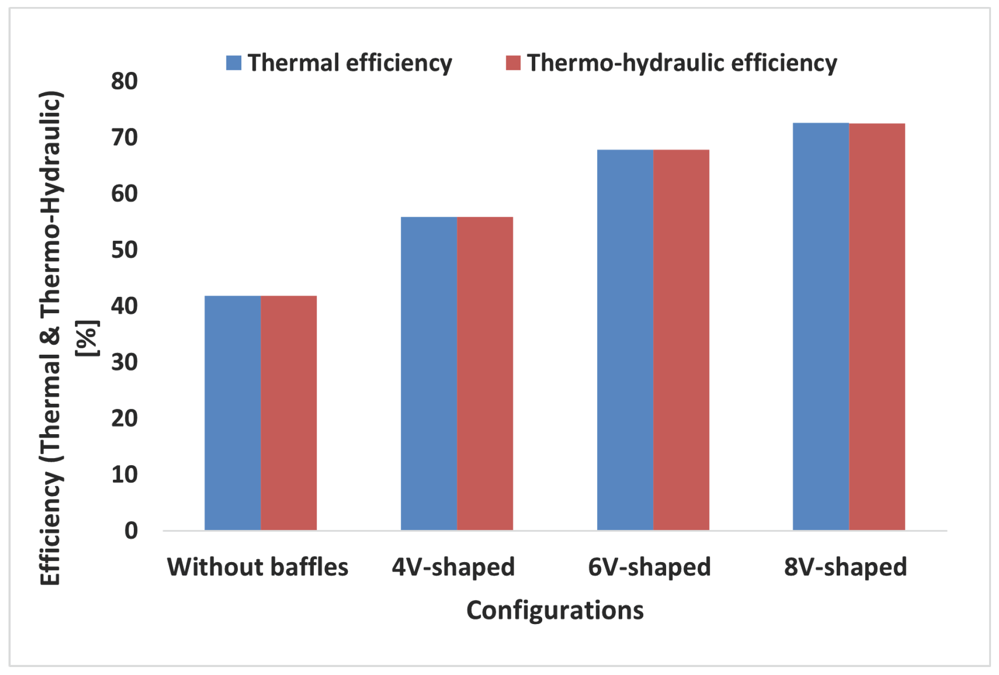 12] analyzed the influence of baffle length and arrangement using CFD, showing that periodic baffles improved turbulence and achieved a maximum TPF of 3.267. Chang et al. [