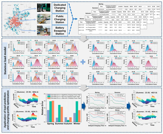 - Classification and seasonal characterization of CBSSs: The 962 CBSSs are categorized into three types—dedicated charging stations, public charging stations, and battery swapping stations. The seasonal characteristics and variations of the charging coincidence factor among the three station types are comprehensively analyzed.