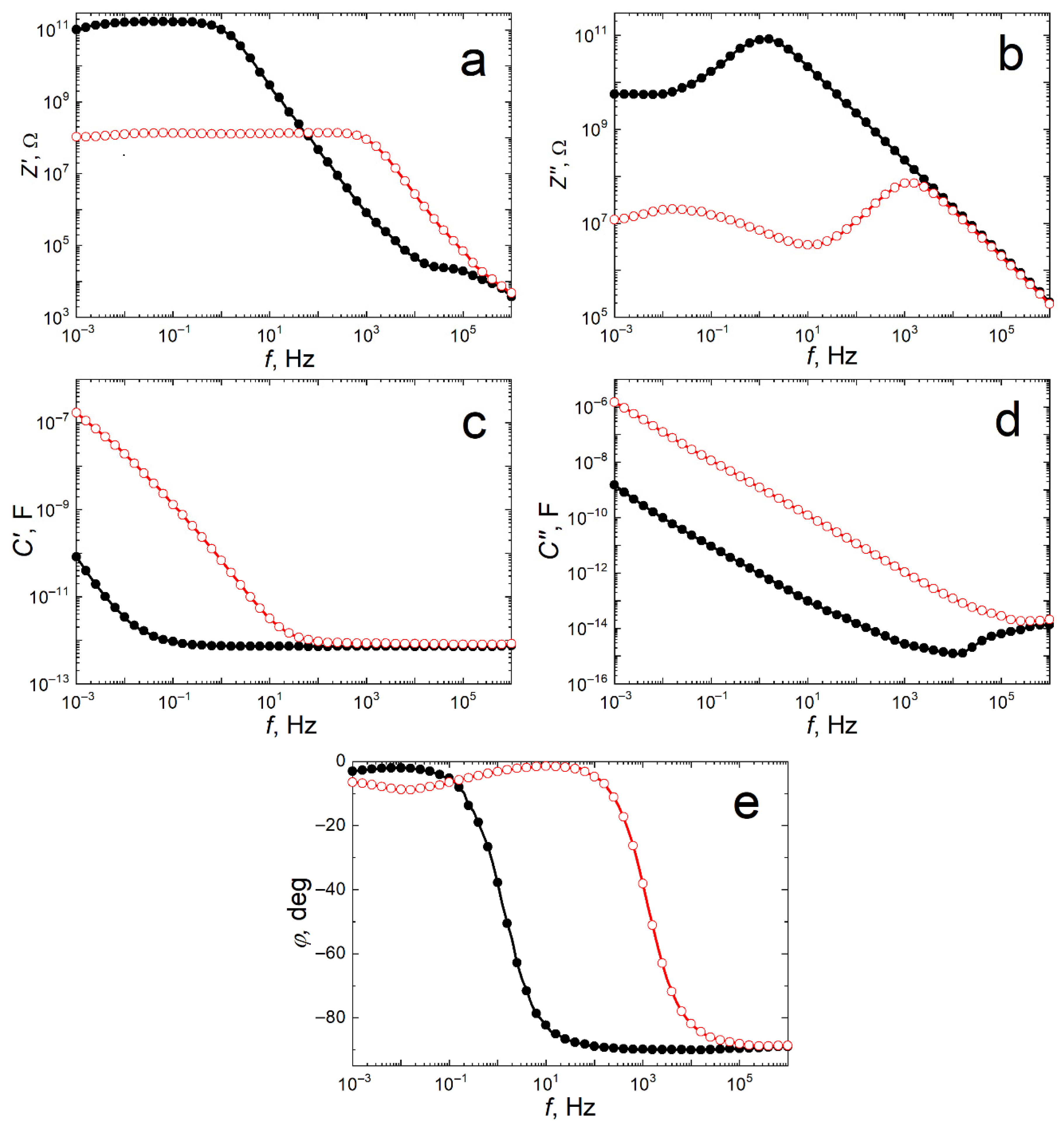 - Jonscher, A.K. Dielectric relaxation in solids. J. Phys. D Appl. Phys. 1999, 32, R57–R70. [Google Scholar] [CrossRef]