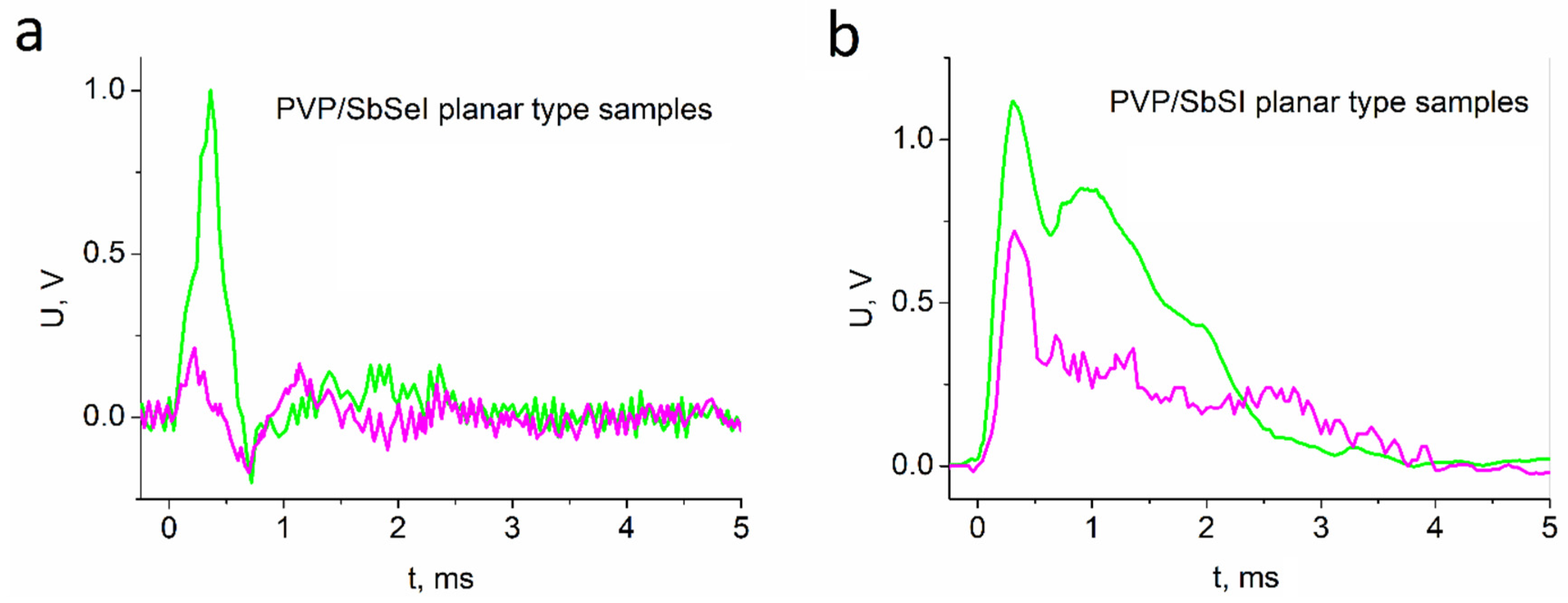 PVP/SbSI Nanofibres | PVP/SbSeI Nanofibres | ||||