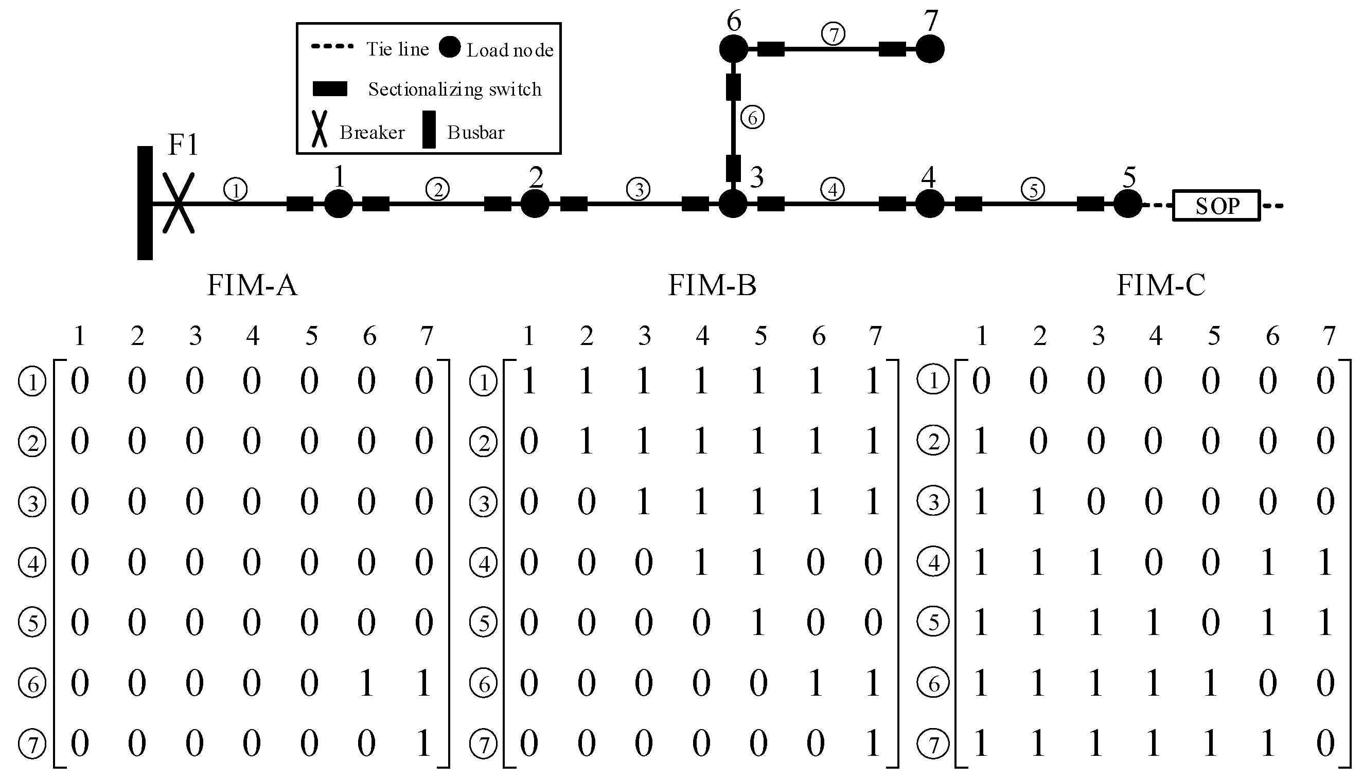 Figure 3. FIM-A, B, C of 7-node distribution system.