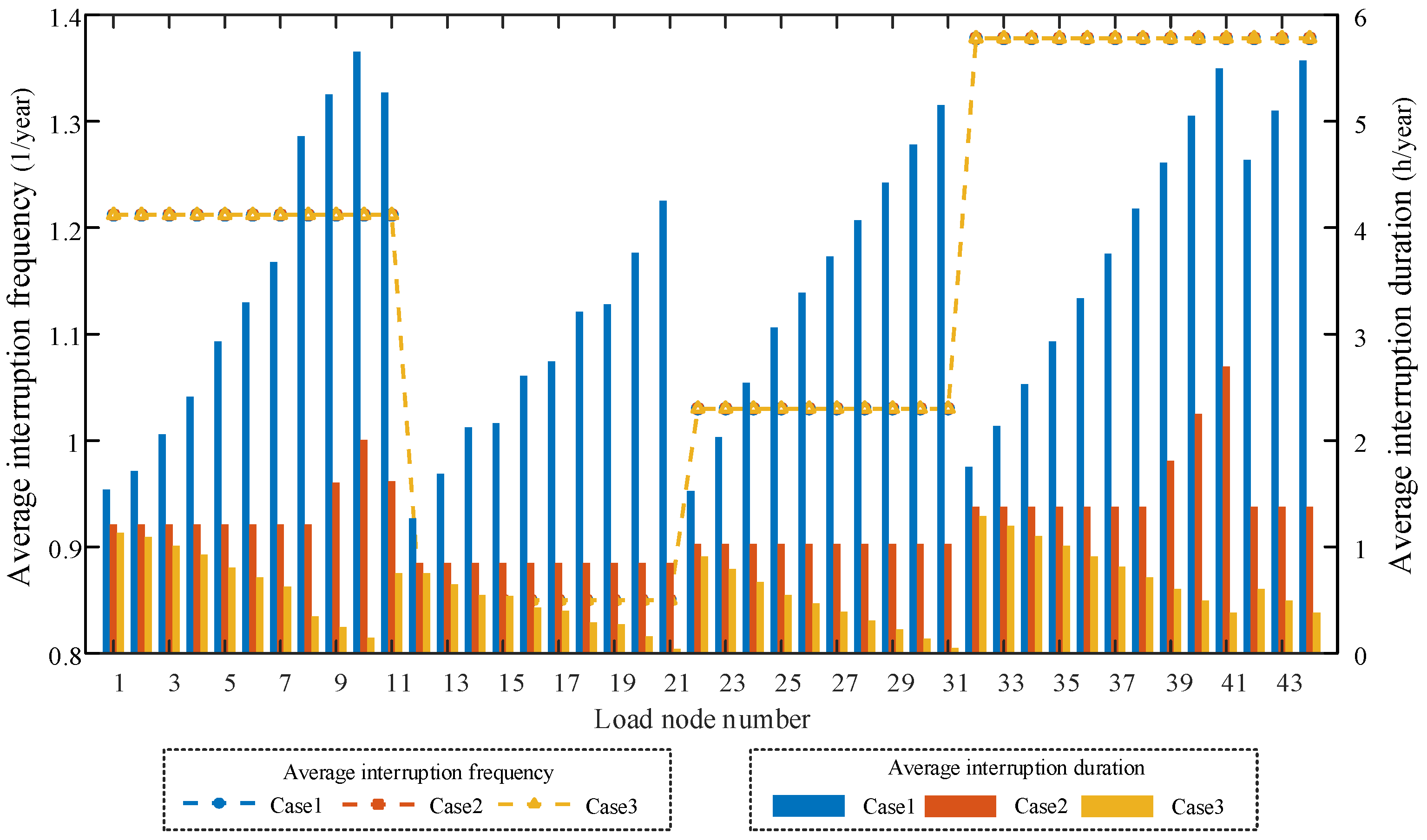 Figure 6. Average interruption frequency and average interruption duration of load nodes.