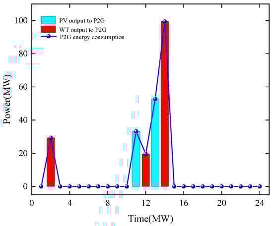 Upon establishment of the cooperative alliance, in accordance with the alliance’s resource allocation principles, the energy consumption and CO2 emissions required for P2G equipment shall be supplied by RES and CCPP to reduce the costs associated with wind and solar curtailment penalties and carbon offset purchases. The consumption of P2G can be expressed as
