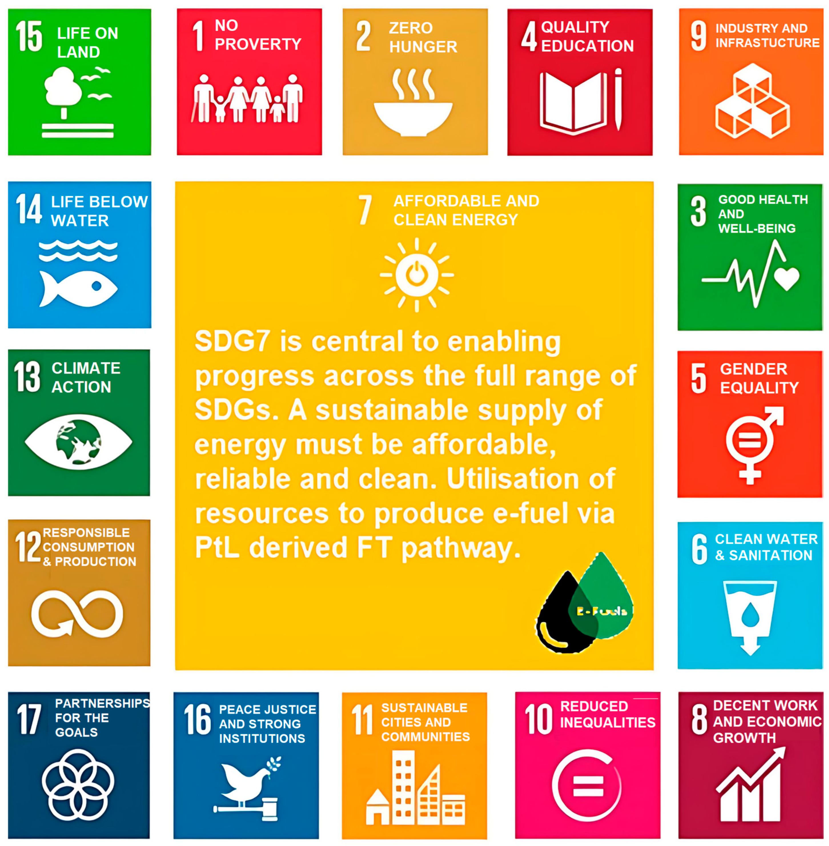 | Malaysia, 2025 [117] | E-fuel: Electrolysis, CCS | TEA: Efficiency, Cost LCA: Carbon emission | Achieved 20% efficiency and 30–40% cost reductions. | 70–90% carbon reduction vs. fossil fuel. | TEA requires costs below $3/kg. | Need for scalable e-fuel technologies. |