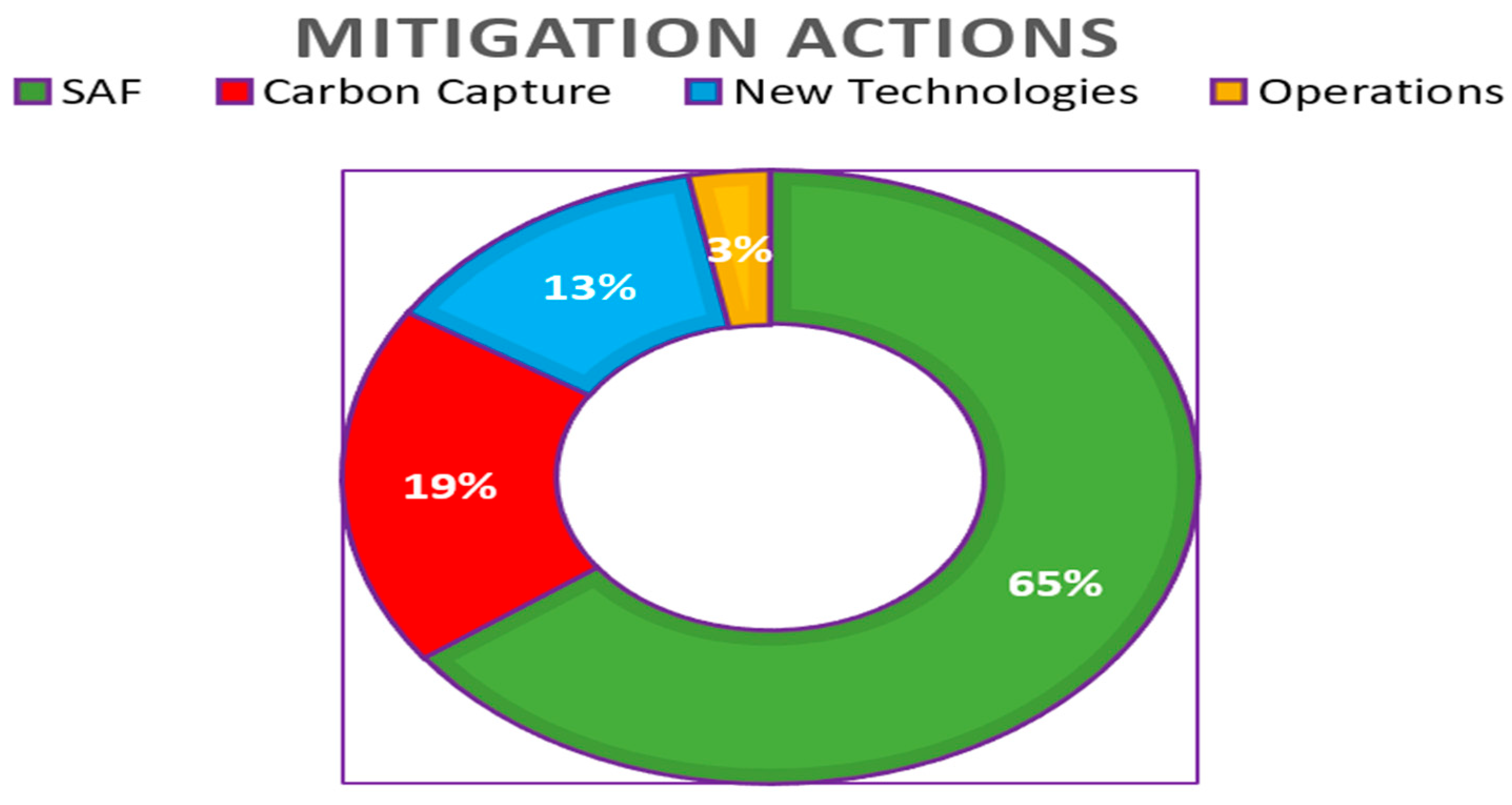 | Turkey, 2024 [122] | SAF: technological advancements in fuel production | Evaluation: energy densities and footprints | Presents critical data on the aviation industry’s energy consumption, which reached 12.1 MJ/RTK in 2022. | With projections indicating a potential increase by 2.8 to 3.9 times by 2040 | Aviation emissions could reach 2000 megatons by mid-century. | Economic incentives for SAF adoption require further exploration. |