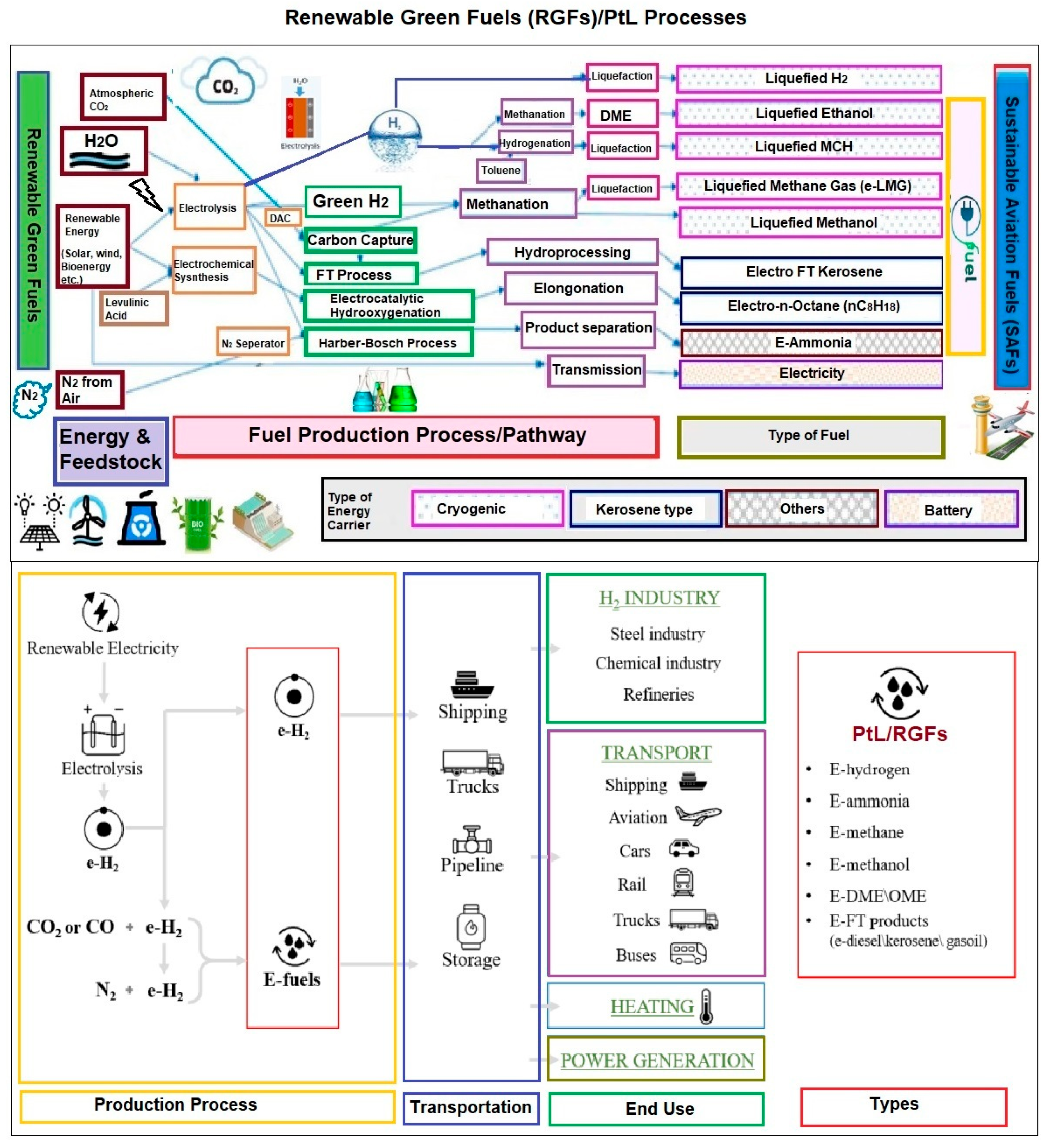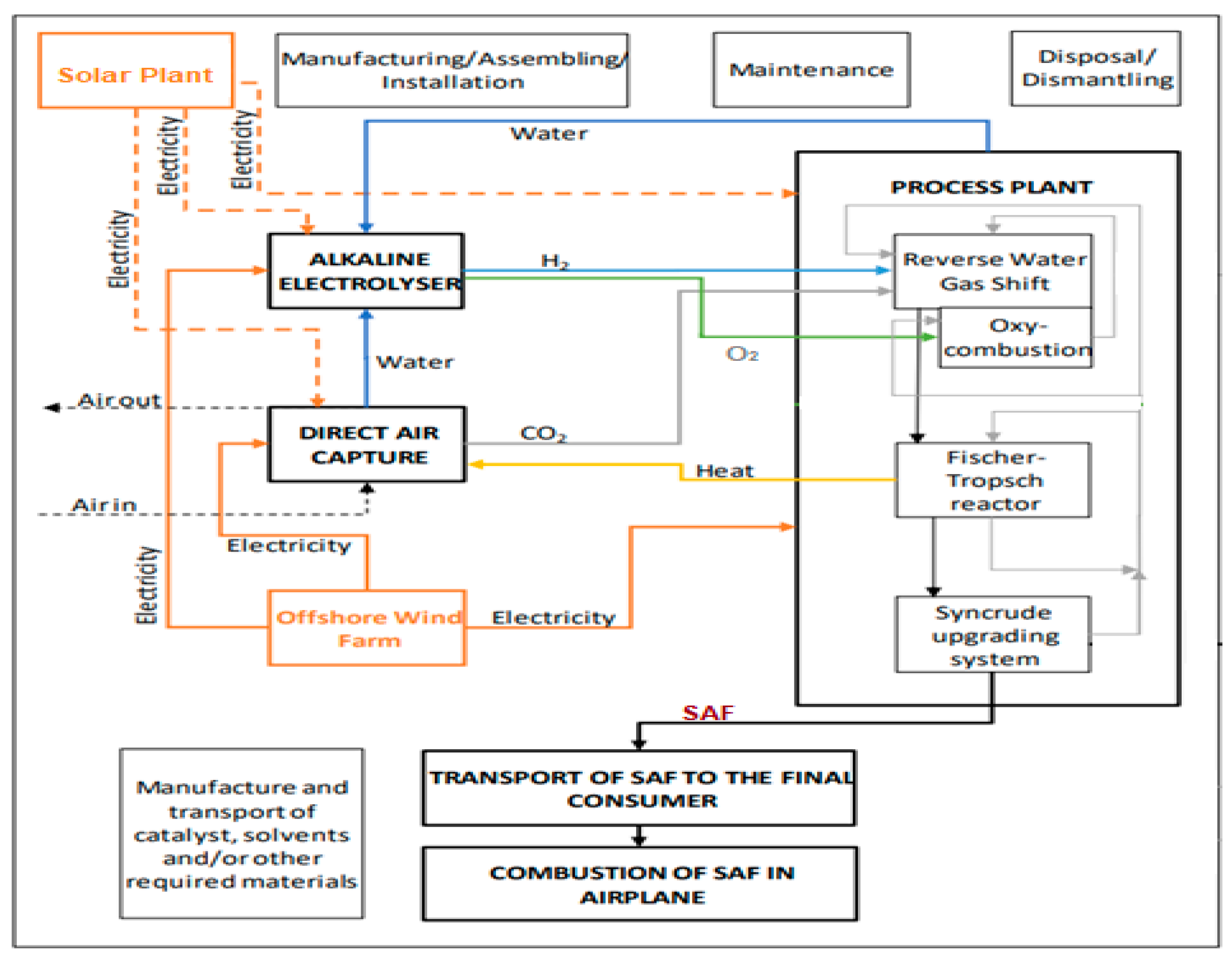 - Articles that specifically explored FT based e-fuel production for SAF utilizing green hydrogen and atmospheric CO2.