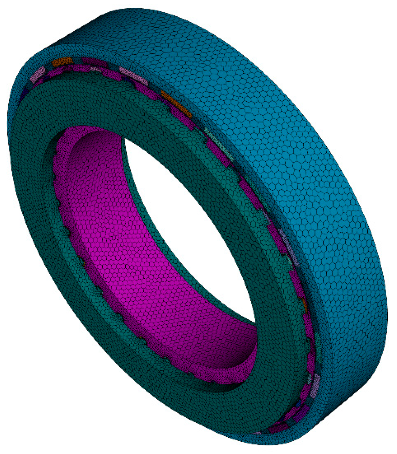 Table 3, the mesh density has a relatively small influence on the motor temperature simulation outcomes, indicating that the mesh division and temperature field simulation approach adopted in this study are reasonable and reliable. To meet the required computational accuracy, local mesh refinement was applied to the windings and air gap regions. Scheme 3 was ultimately selected for the final mesh configuration, with a total of 1,425,971 elements in the temperature field model. The corresponding finite element model of the hub motor is shown in