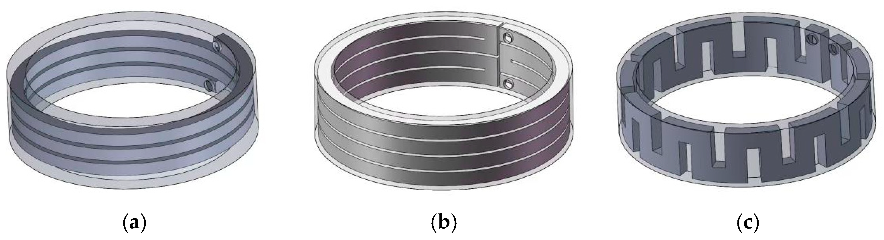 Based on the dimensions of the in-wheel motor, this study proposes three cooling channel configurations: a spiral channel, a parallel channel, and an axial channel. Their geometric models are illustrated in