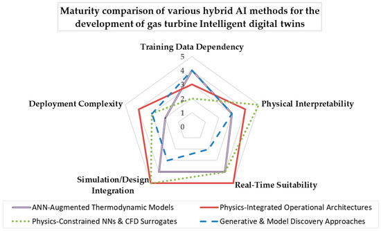 Each category presents distinct trade-offs in terms of generalizability, accuracy, computational cost, and suitability for real-time implementation. This provides a comprehensive baseline for leveraging different methods in the development of intelligent digital twins. Earlier reviews have been more limited in scope, often focusing on specific aspects. For example, some organized hybrid AI by network type, such as Physics-Informed Neural Networks (PINNs) [17,28,31,32] or operator-learning frameworks [19,39,40]; others classified approaches by application area (e.g., diagnostics, monitoring) or by the general level of physics integration [4,41].