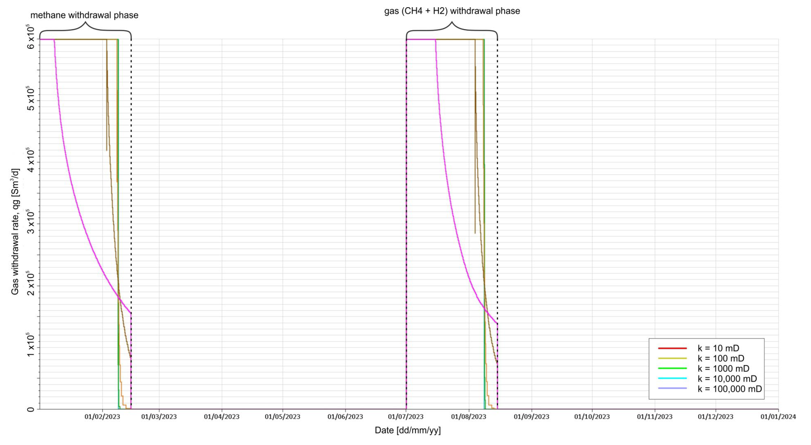 - Two phases of H2 withdrawal per year, i.e., 15.03–14.05, 15.09–14.11,