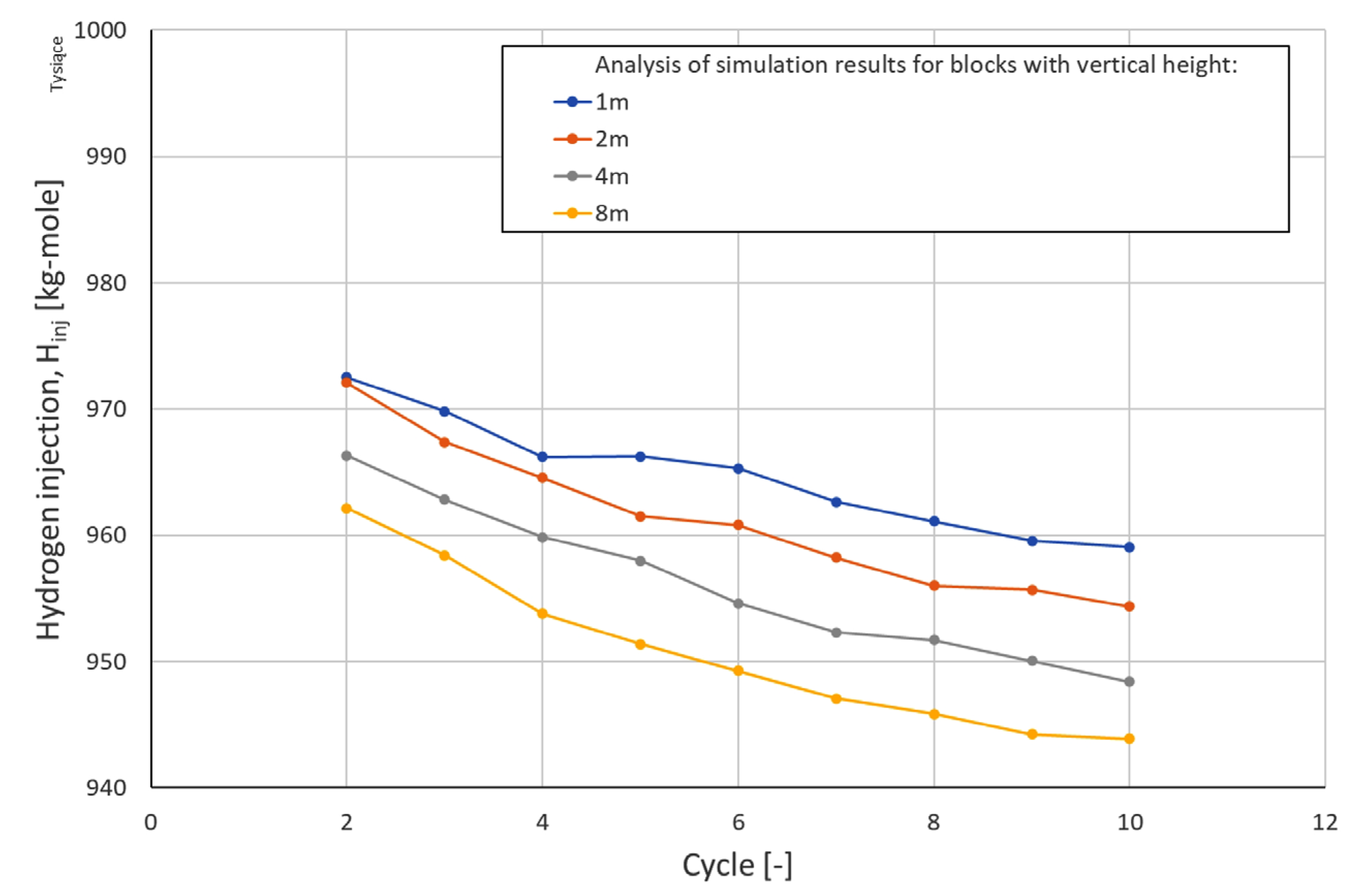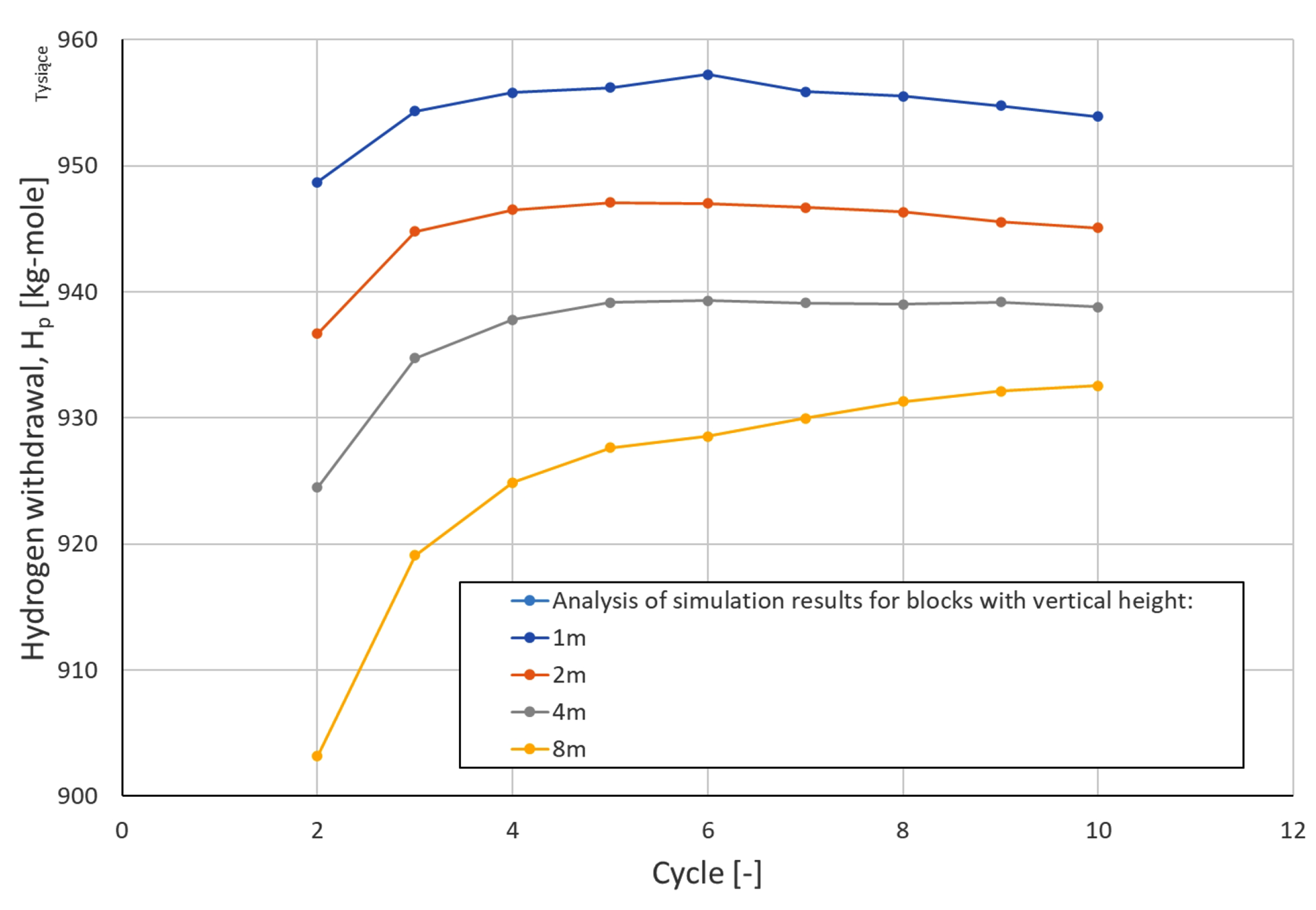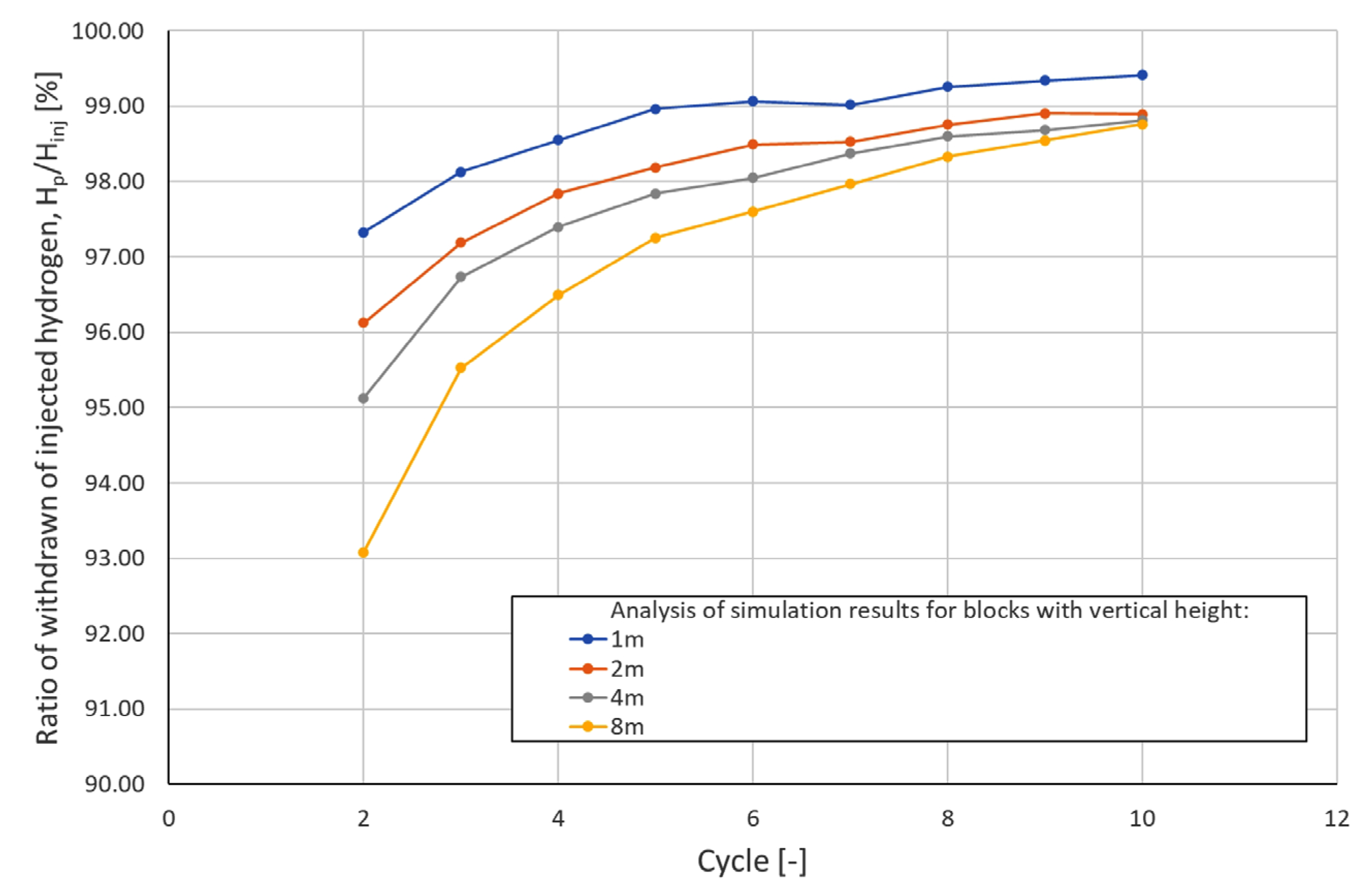 Cycle\Block Height | Ratio of Withdrawn to Injected Hydrogen in Subsequent Cycles [%] | |||