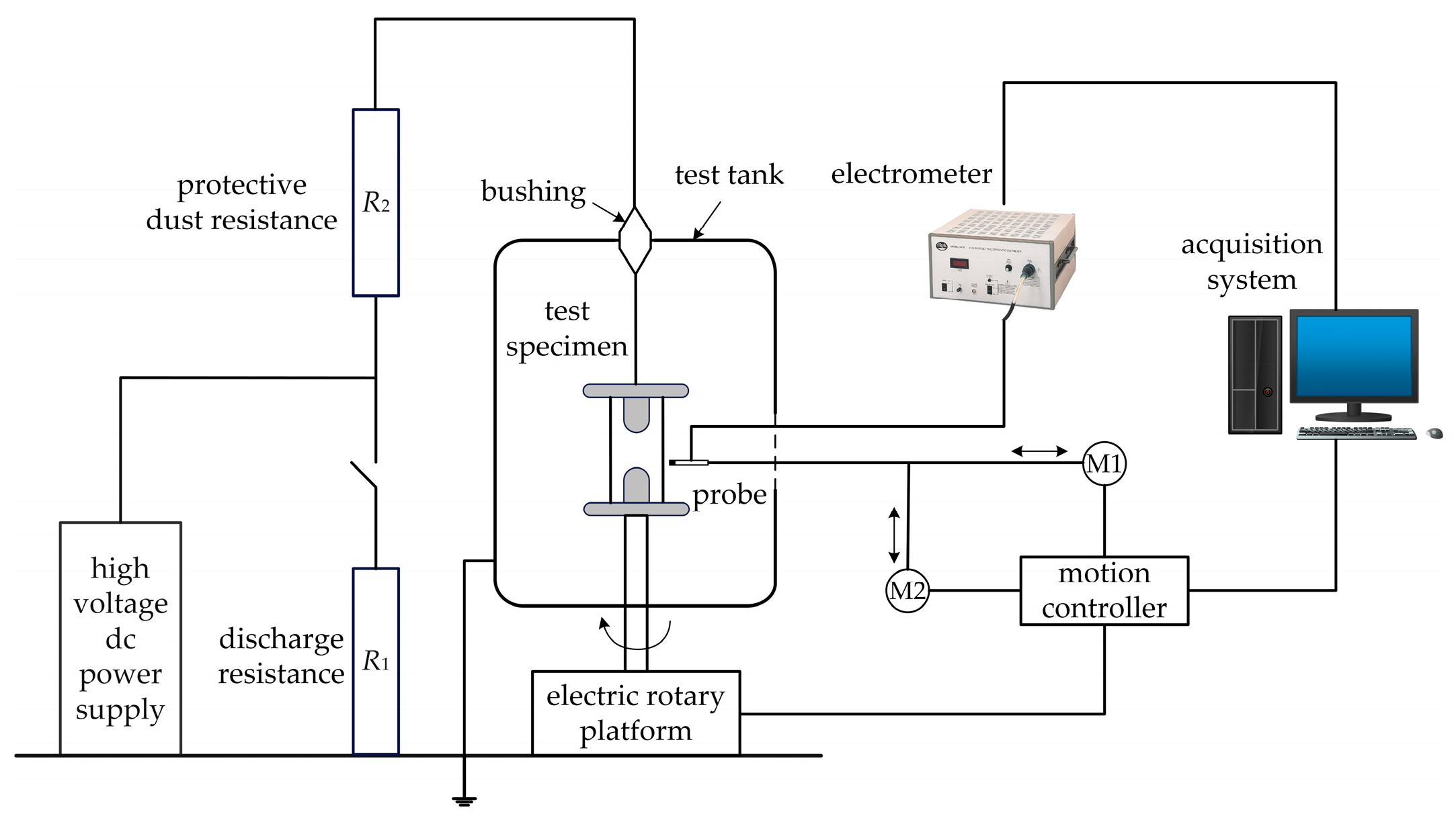 - Kumada, A.; Okabe, S. Charge distribution measurement on a truncated cone spacer under DC voltage. IEEE Trans. Dielectr. Electr. Insul. 2004, 11, 929–938. [Google Scholar] [CrossRef]