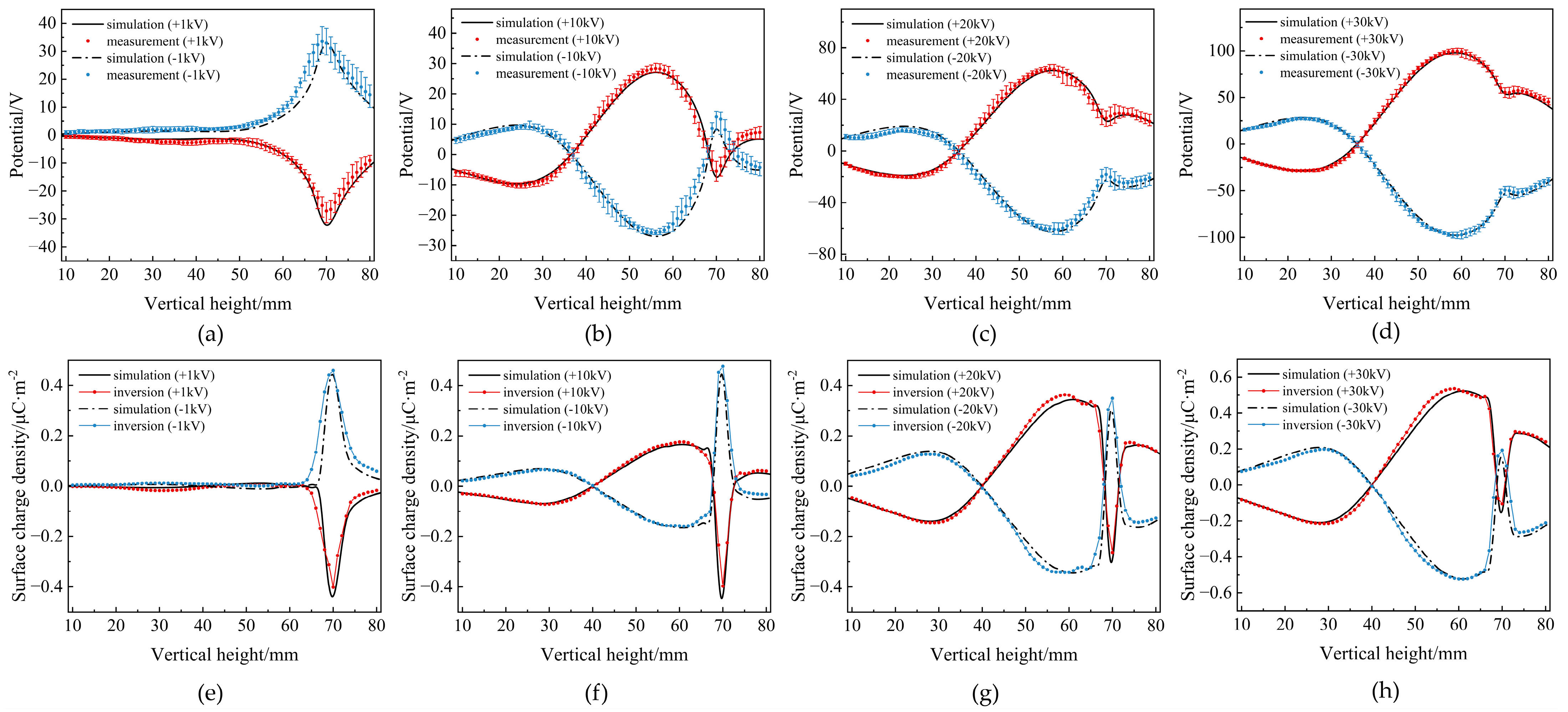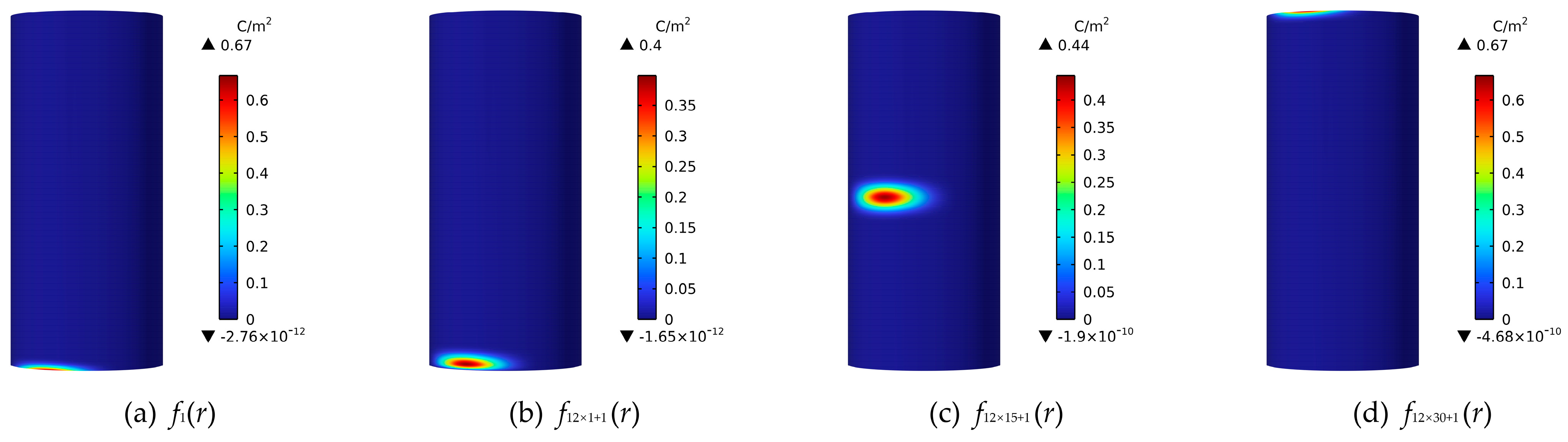 - Wang, H.; Xue, J.Y.; Wang, Y.B.; Su, G.Q.; Deng, J.B.; Mu, H.B.; Zhang, G.J. Improved algorithm of surface charge density distribution and electric field distribution on insulating materials. In Proceedings of the 2017 1st International Conference on Electrical Materials and Power Equipment, Xi’an, China, 14–17 May 2017; pp. 332–335. [Google Scholar]