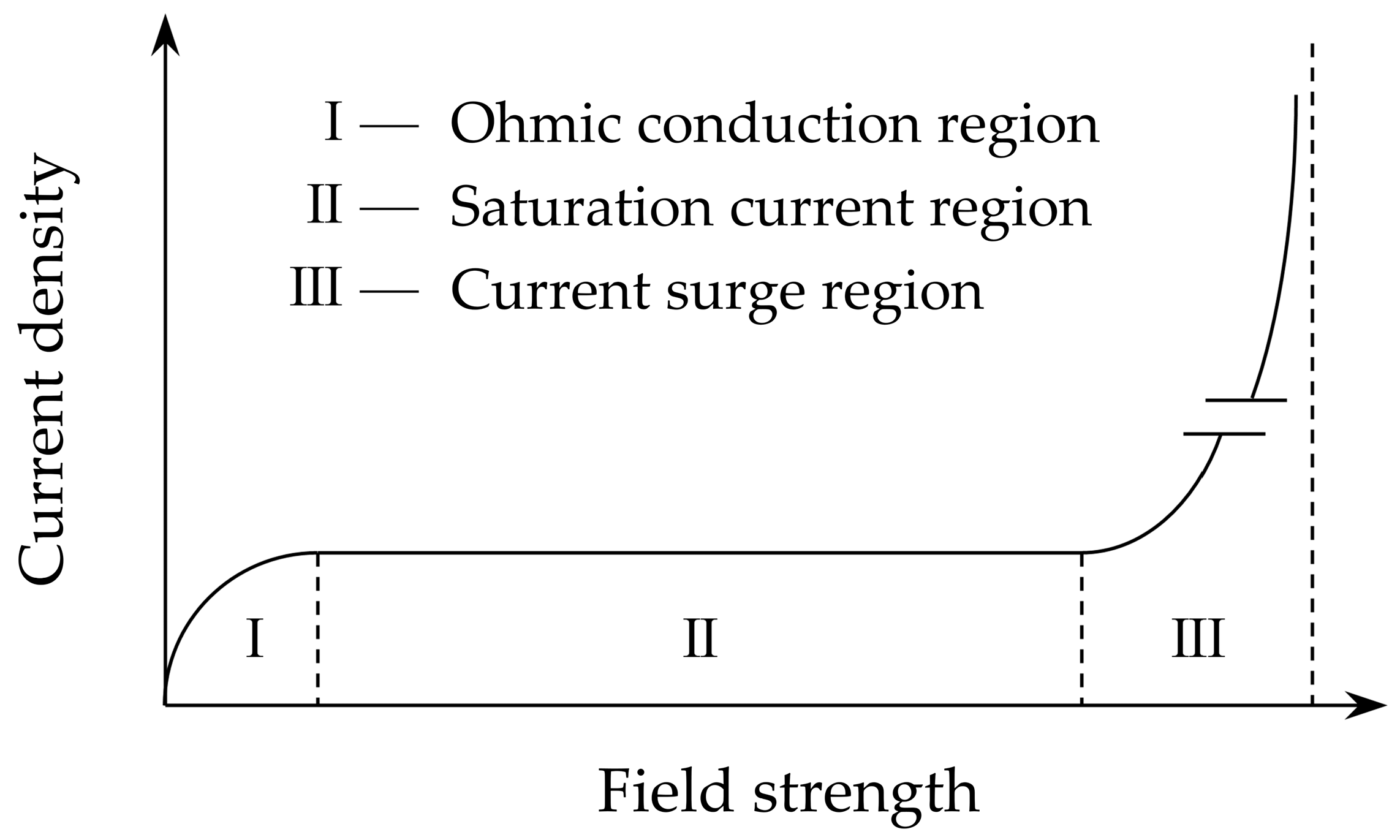 - Guillermin, C.; Rain, P.; Rowe, S.W. Transient and steady-state currents in epoxy resin. J. Phys. D Appl. Phys. 2006, 39, 515. [Google Scholar] [CrossRef]