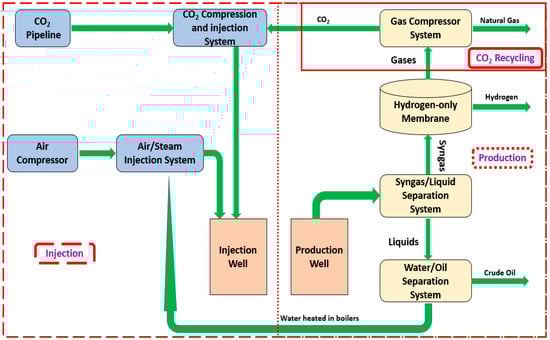 Figure 3. A typical process flow diagram of hydrogen production from petroleum reservoirs.
