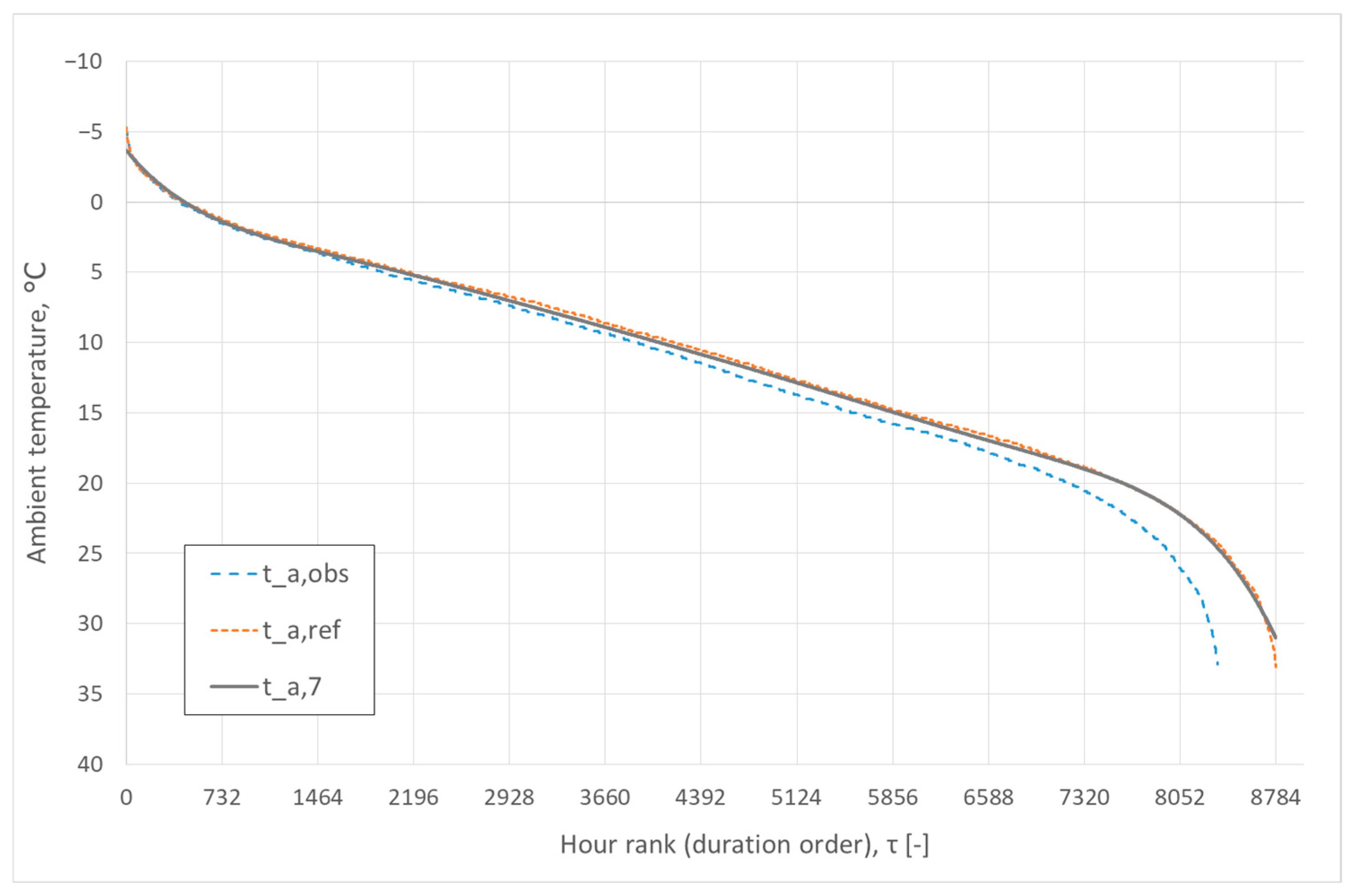 - Inserting the complete series into the ASHP model, where the manufacturer’s characteristics and are interpolated exponentially.