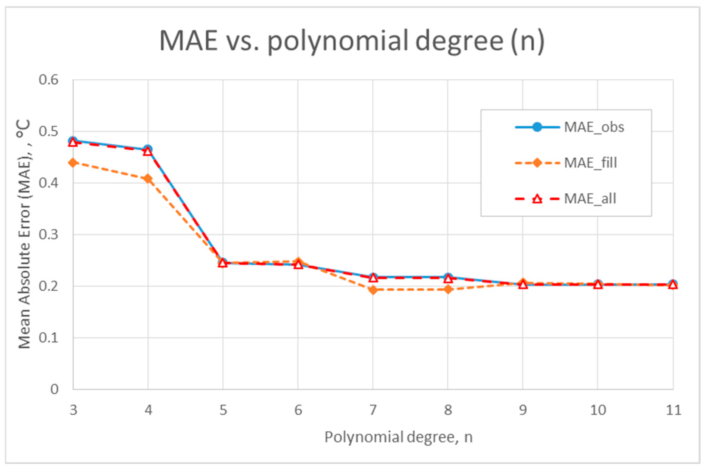 2.4. Reconstruction of Temperature Data Using Polynomial Regression