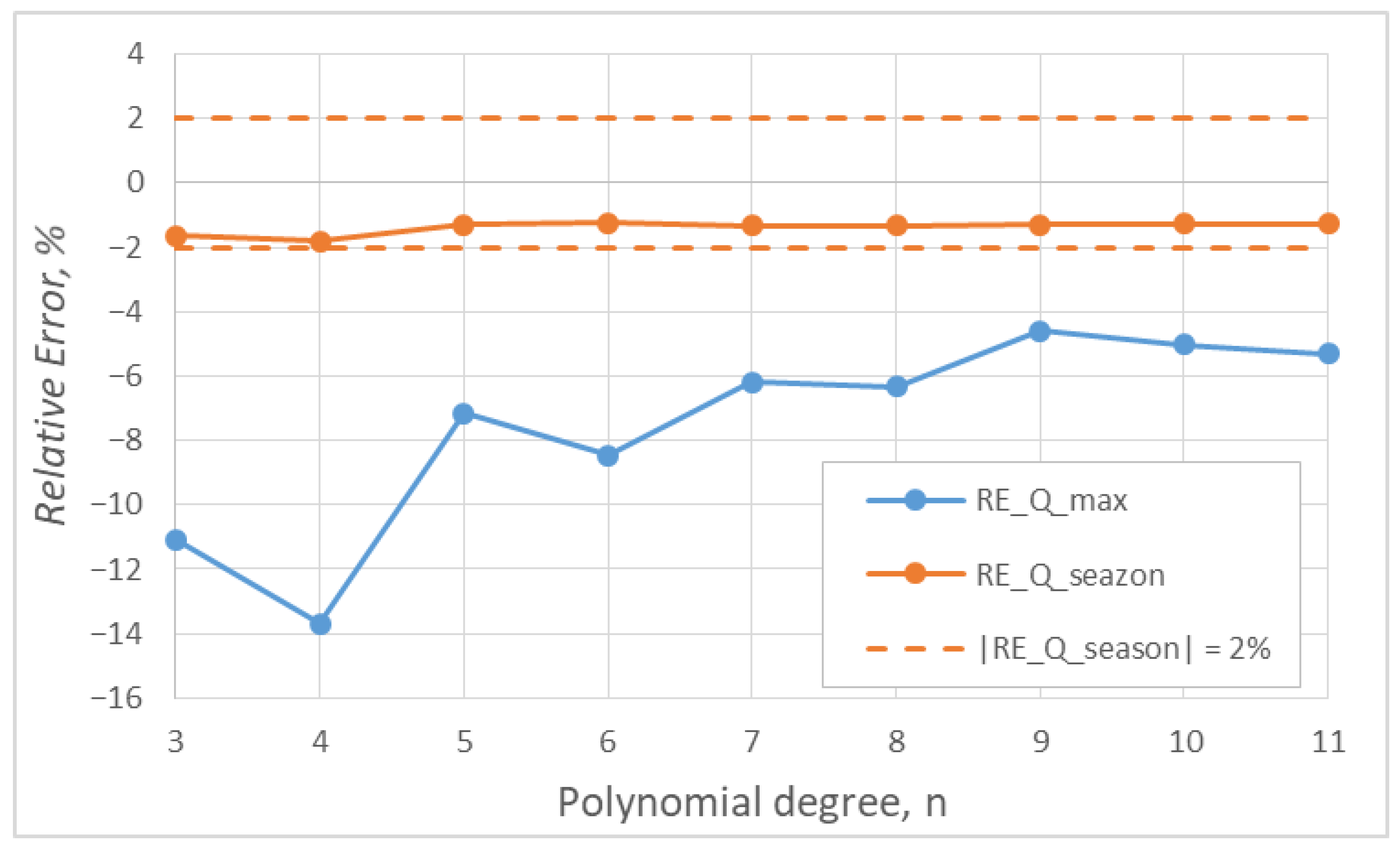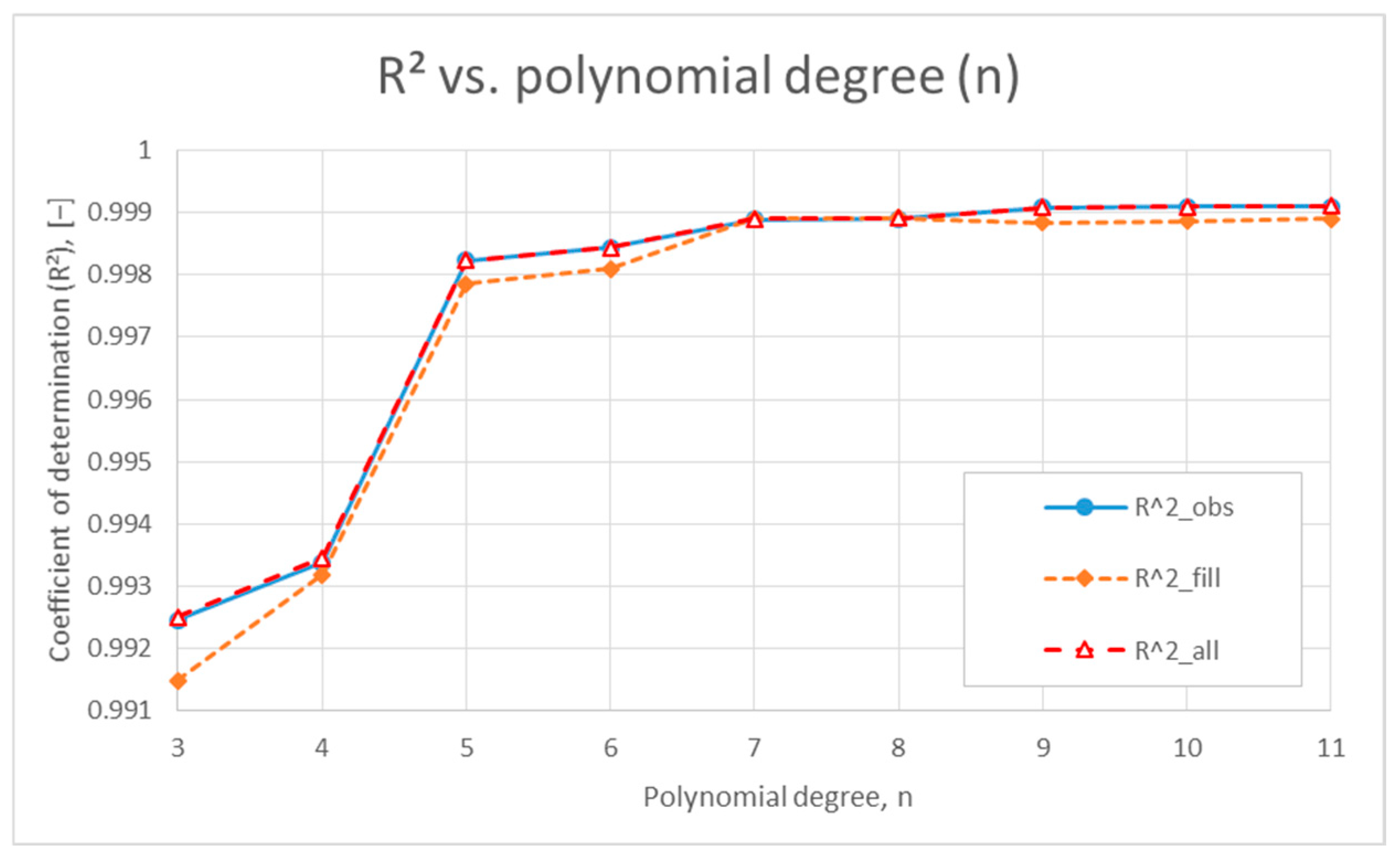 - Fitting a polynomial of degree n in the range n = 3, 4, …, 11, according to Equation (3):