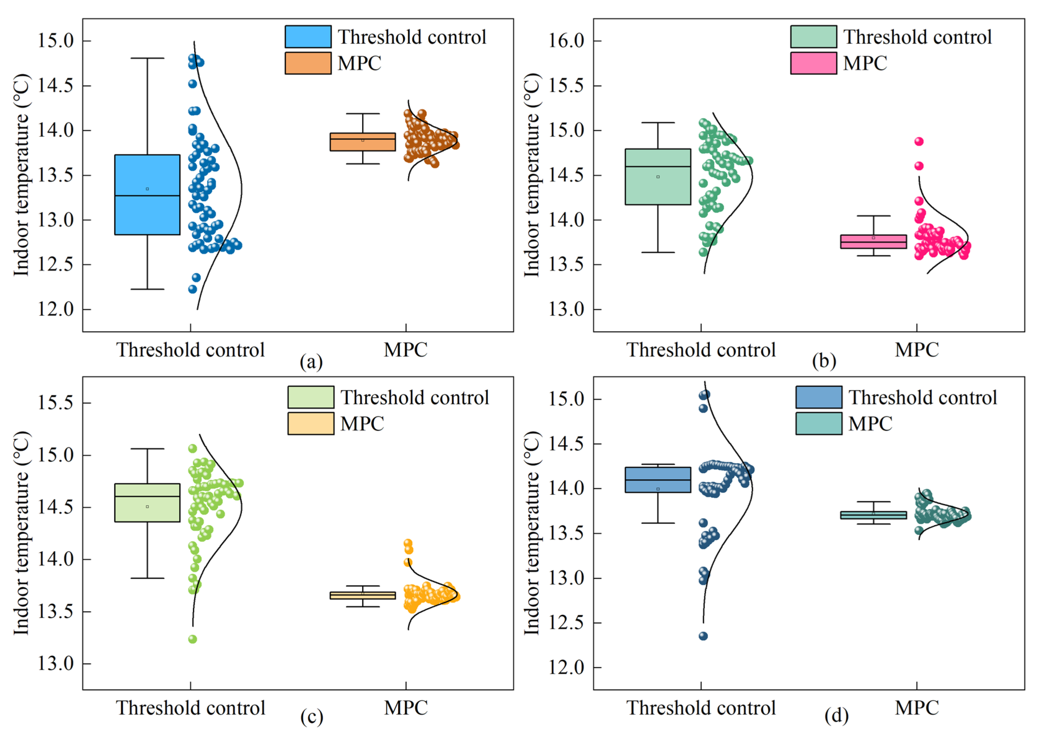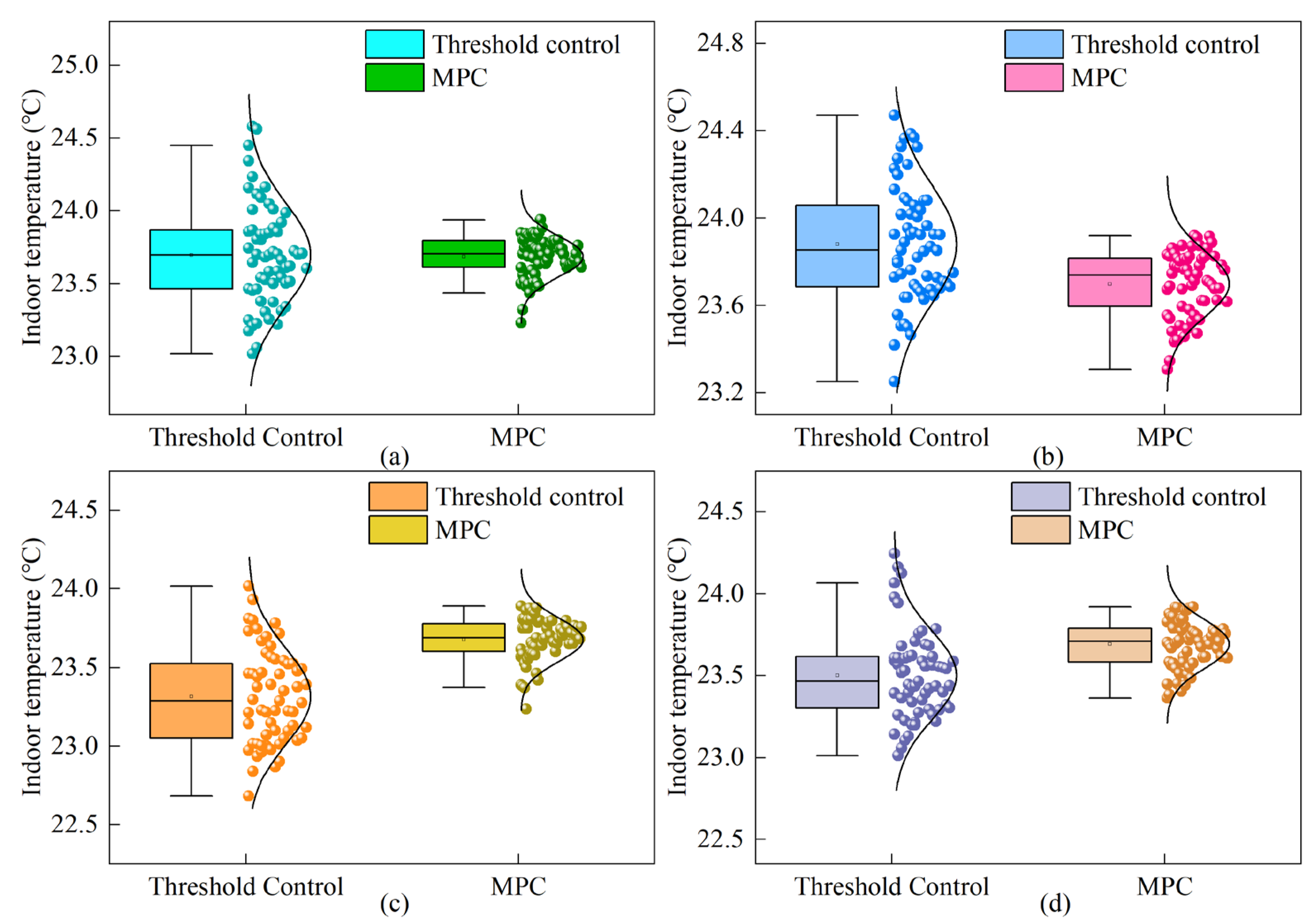 - Wang, H.; Bo, S.; Zhu, C.; Hua, P.; Xie, Z.; Xu, C.; Wang, T.; Li, X.; Wang, H.; Lahdelma, R. A zoned group control of indoor temperature based on MPC for a space heating building. Energy Convers. Manag. 2023, 290, 117196. [Google Scholar] [CrossRef]