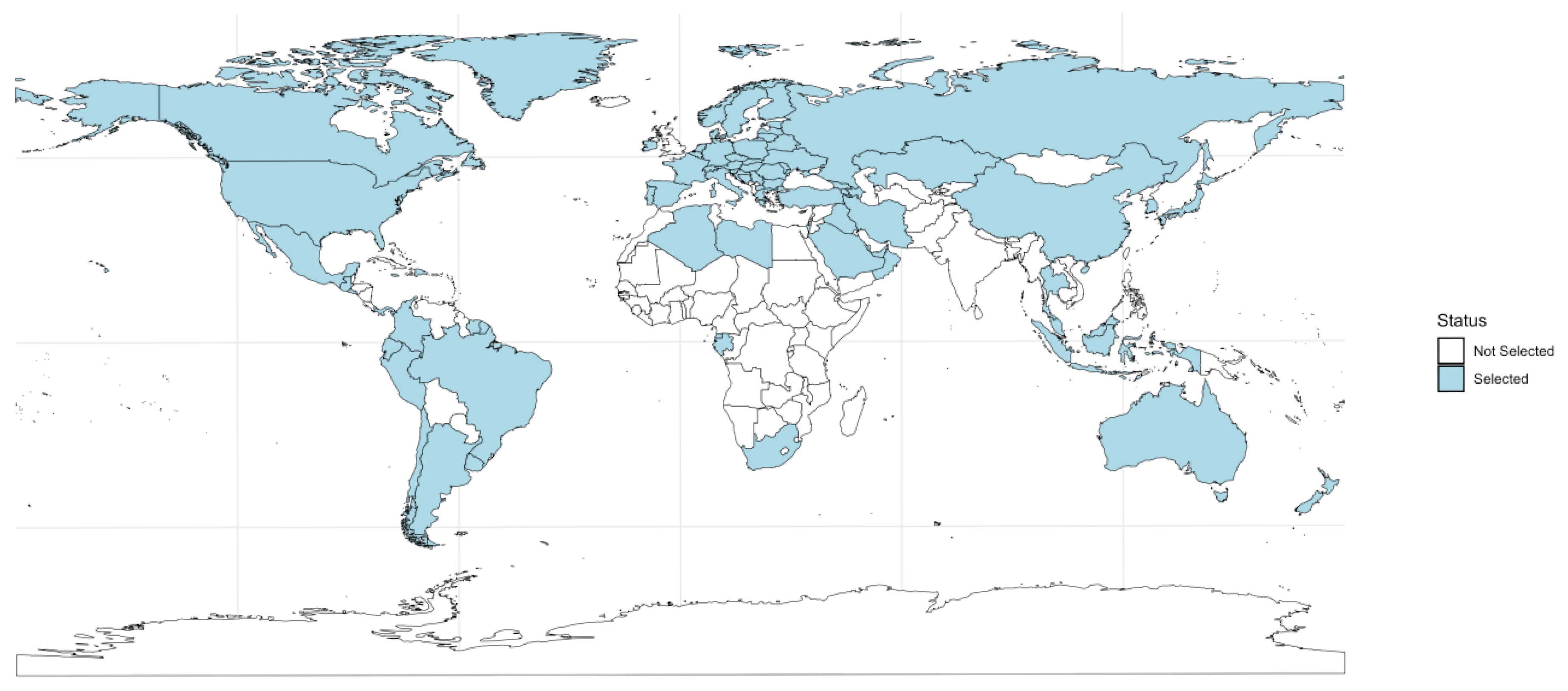 The resulting mix is largely suitable for our research question as it combines fossil exporters and importers, hydro-rich and thermal-heavy systems, and a range of trade openness and policy regimes, which should increase the identification of variation. It is important to note that although our empirical focus is on CO2 and methane, this should not be taken to imply that other greenhouse gases are irrelevant. The choice reflects data availability and sectoral consistency rather than a deliberate conceptual exclusion. CO2 and methane together account for most anthropogenic radiative forcing and are directly linked to the energy and agrifood channels central to our framework. Other gases, such as nitrous oxide and fluorinated compounds, also matter but tend to originate from more specialized industrial or chemical processes that are difficult to harmonize in cross-country panels.