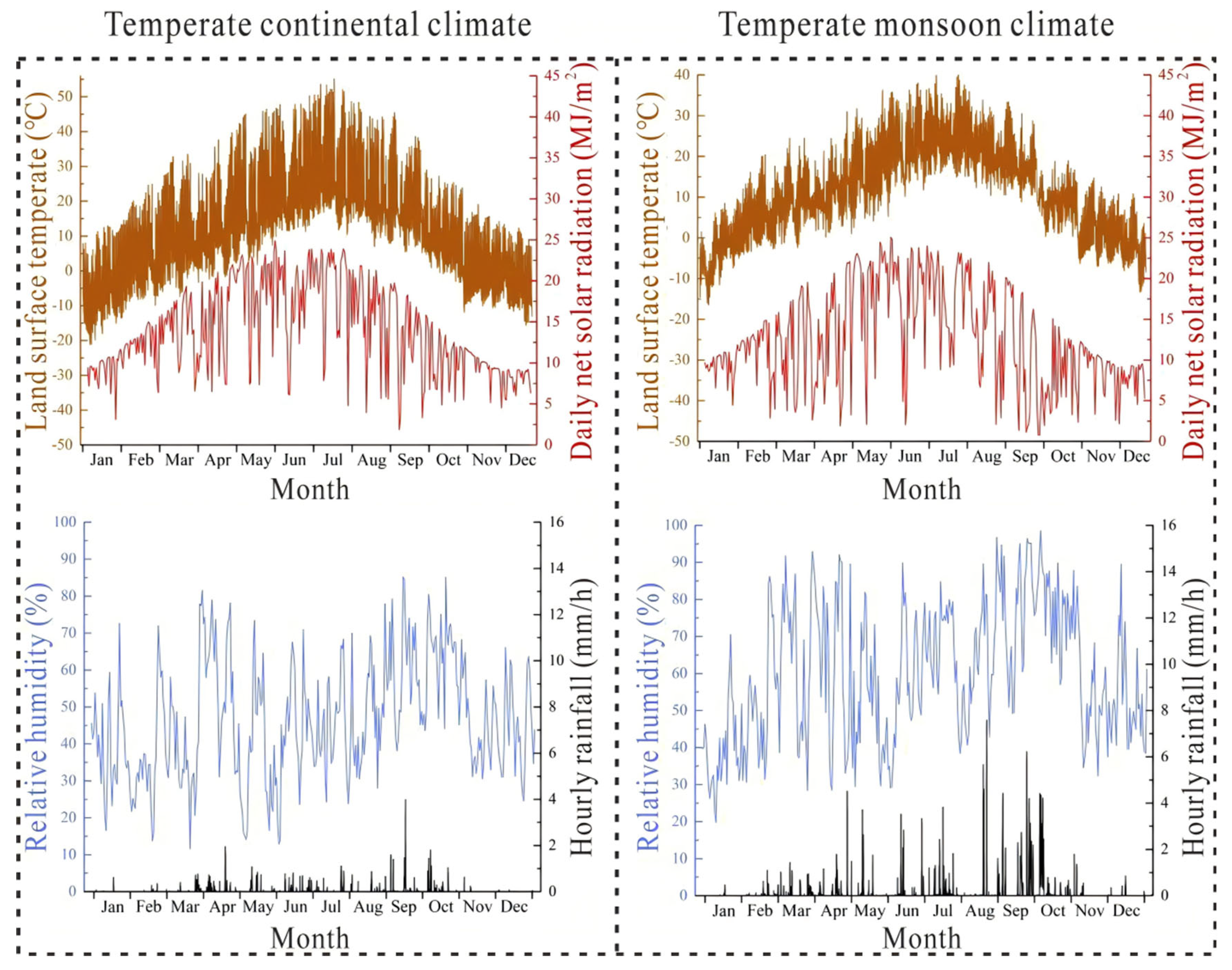 The study areas have sufficient sunshine, with a maximum daily net solar radiation intensity of 25.05 MJ/m