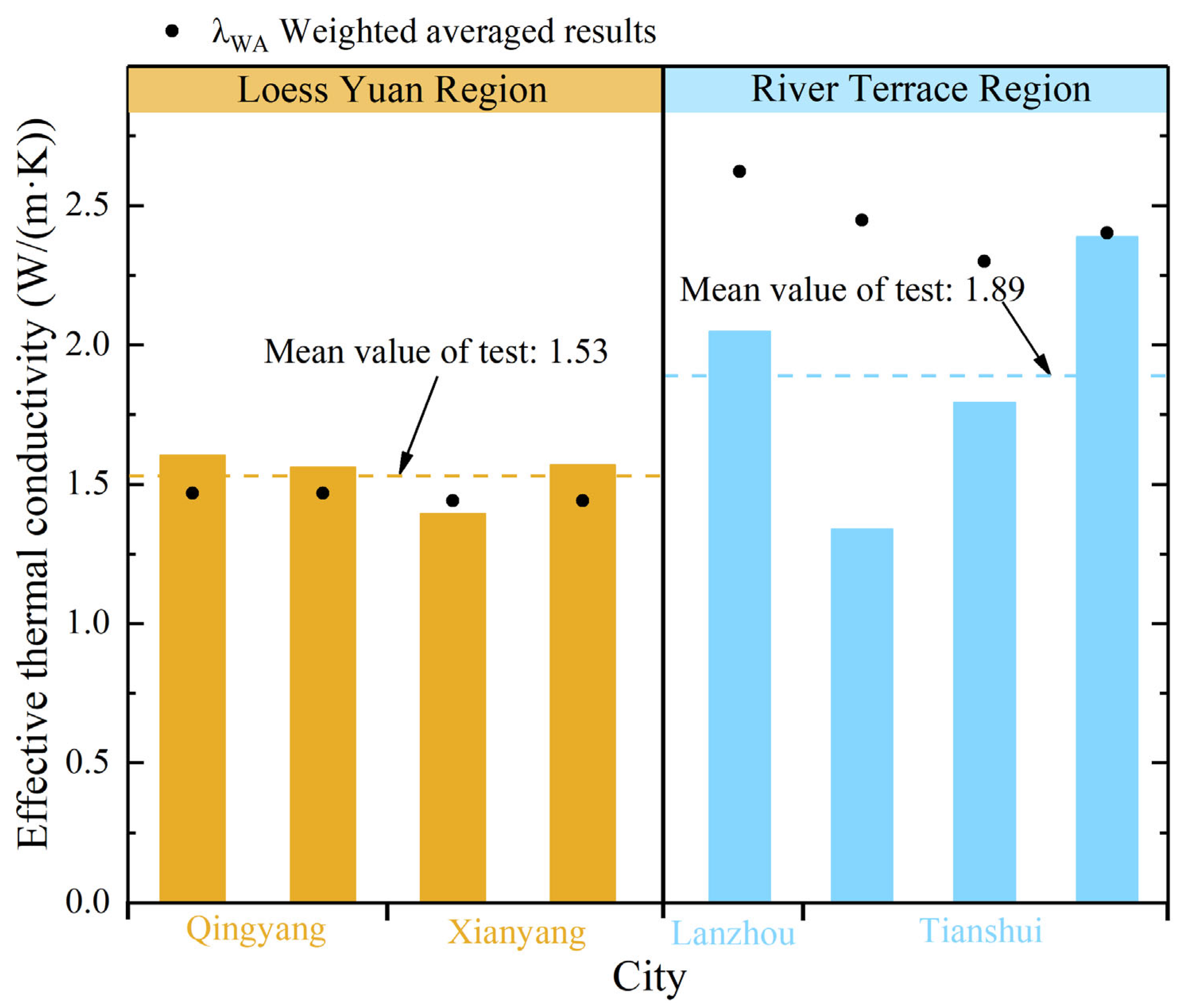 WA of the ground varies between 2.3 W/(m·K) and 2.622 W/(m·K) at the River Terrace Region. For the Loess Plateau Region, the λ