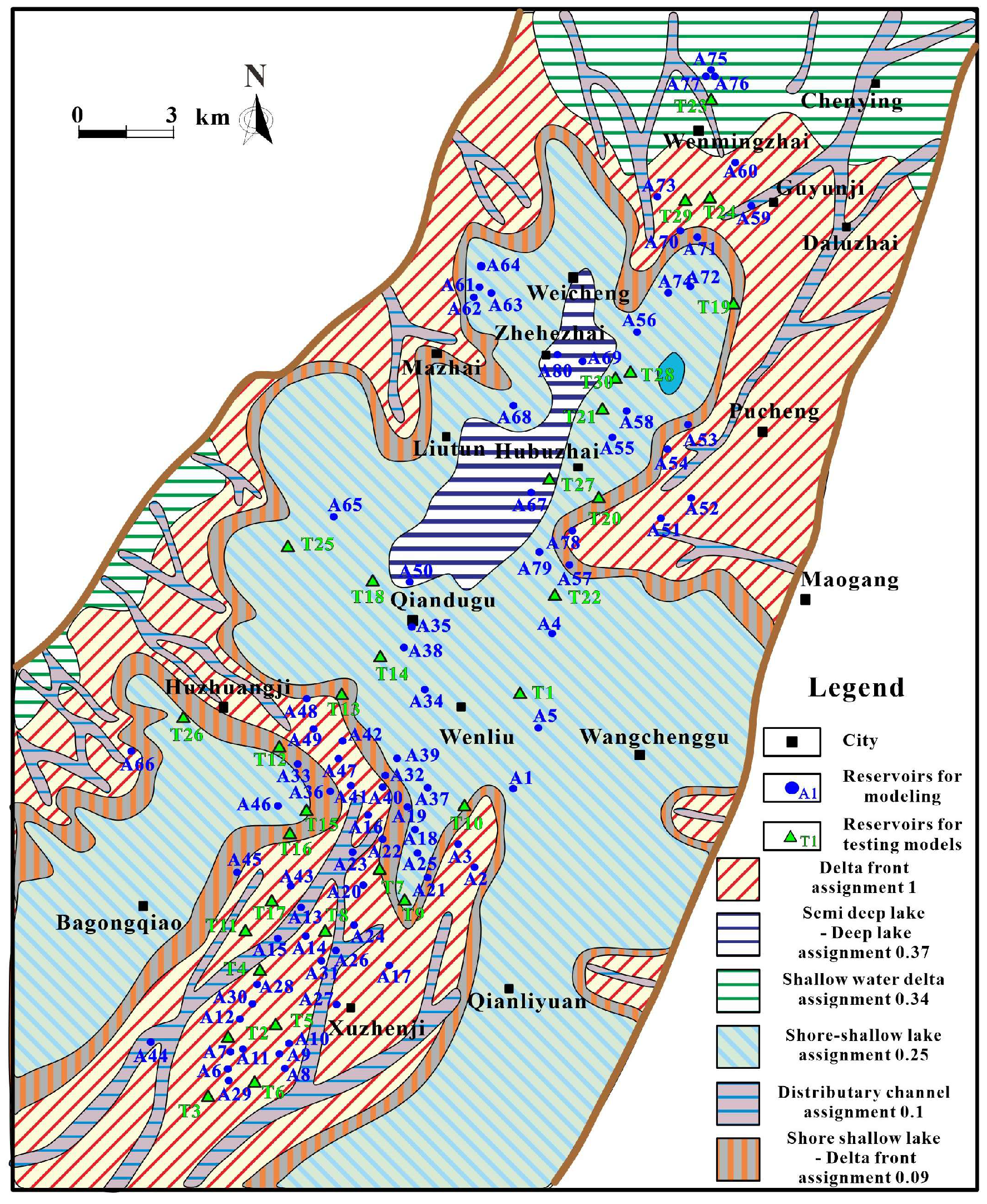 - Wan, T.; Tan, Y.M.; Su, H.; Wang, X.W.; Ni, J.F.; Liu, H.M.; Wan, J. Palaeogeomorphology of Middle Es3 Formation in Pucheng area of Dongpu depression and its relationship with sedimentary facies. Geol. China 2014, 41, 206–214. (In Chinese) [Google Scholar] [CrossRef]