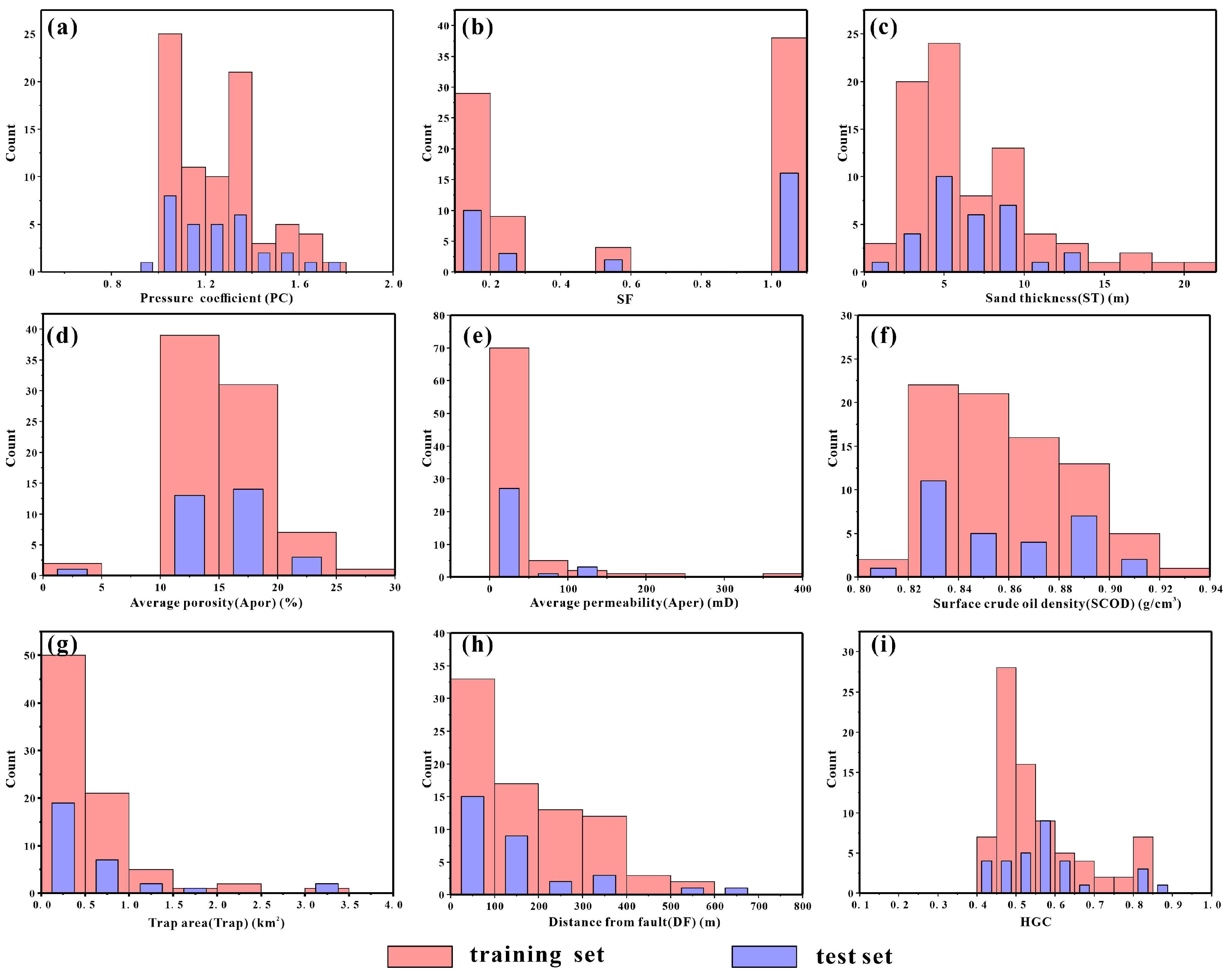- Optimizing Geological Parameters and Data Quality: Our focus is on improving dataset dimensionality and quality by incorporating a broader range of geological parameters. Additionally, we apply principal component analysis (PCA) to reduce the dimensionality of geological parameters, enabling the effective representation of multi-factor, multi-parameter, and low-dimensional data. This approach aims to mitigate the impact of data features on the prediction results. Furthermore, incorporating uncertainty analysis into the dataset, particularly for parameters with high variability, would provide a more comprehensive understanding of the data’s inherent uncertainty and help improve the predictive capabilities of the model.