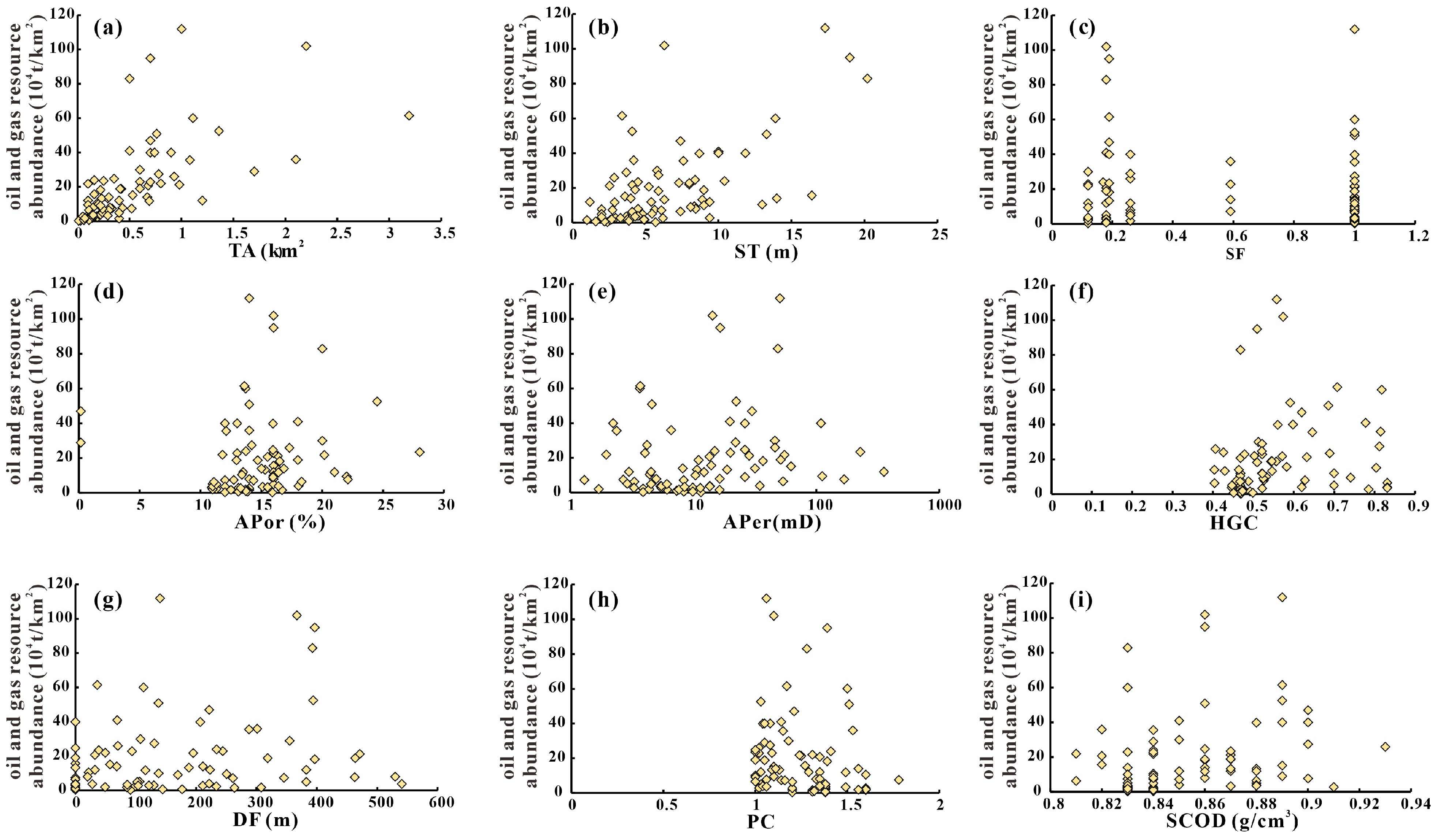 - Zhang, W.; Liu, C.L.; Wu, X.Z.; Zheng, M.; Guo, Q.L.; Zhang, D.Y.; Chen, X.M.; Li, B. Statistical Characteristics and Prediction Models for Oil and Gas Resources Abundance in Different Types of Chinese Basins. Geol. Explor. 2019, 55, 1518–1527. (In Chinese) [Google Scholar]