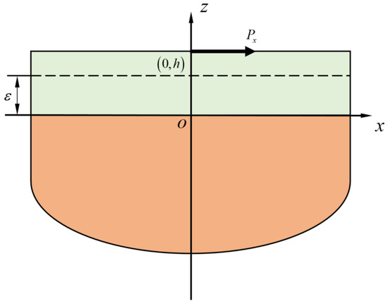 It is assumed that both the semi-infinite substrate and the coating are perfectly bonded. The compatibility conditions at the interface are given in Equation (20).