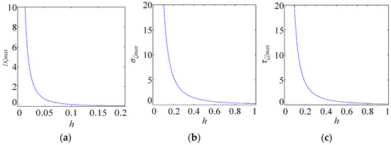 (a–c) Impacts of non-dimensional coating thickness on maximal interfacial electric displacement maximal interfacial normal stress , and maximal interfacial shear stress .