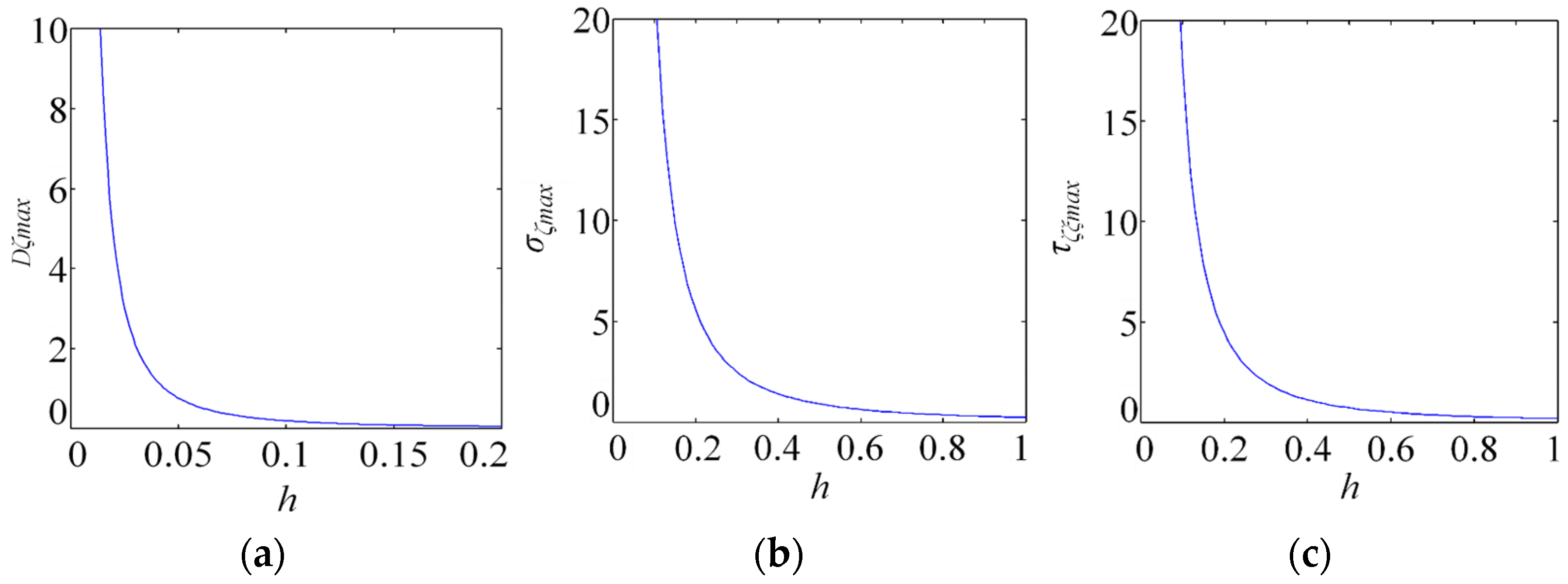 4.2. Impact Induced by Coating Thickness Against Maximal Interfacial Stresses as Well as Electric Displacement