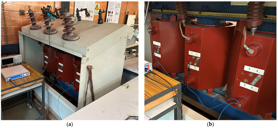 The transformer used in this study is a three-phase cast resin dry-type distribution transformer with rated voltages of 10/0.4 kV, a rated power of 160 kVA, and a rated frequency of 50 Hz. Under normal operating conditions, it is configured in a delta-star connection. However, for the purposes of this study, it was connected in a star-star configuration to facilitate the evaluation of an individual HV winding.