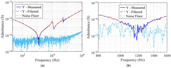 Figure 7 presents the original and smoothed admittance curves, together with the noise floor obtained from an open-circuit measurement.