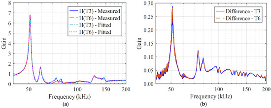 Figure 11 presents the measured and fitted voltage transfer functions for taps T3 and T6 over the frequency range 40 kHz to 200 kHz, along with the corresponding difference curves. The rest of the frequency spectrum is omitted because the response remains effectively constant, as previously shown in