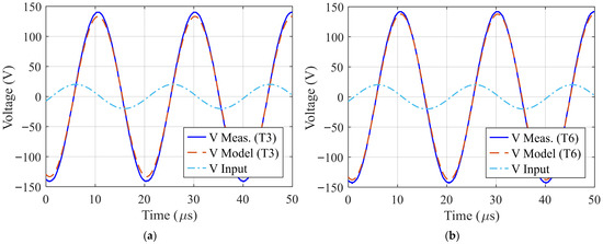 Figure 13 presents a comparison between the measured and simulated internal voltages at terminals T3 and T6, and