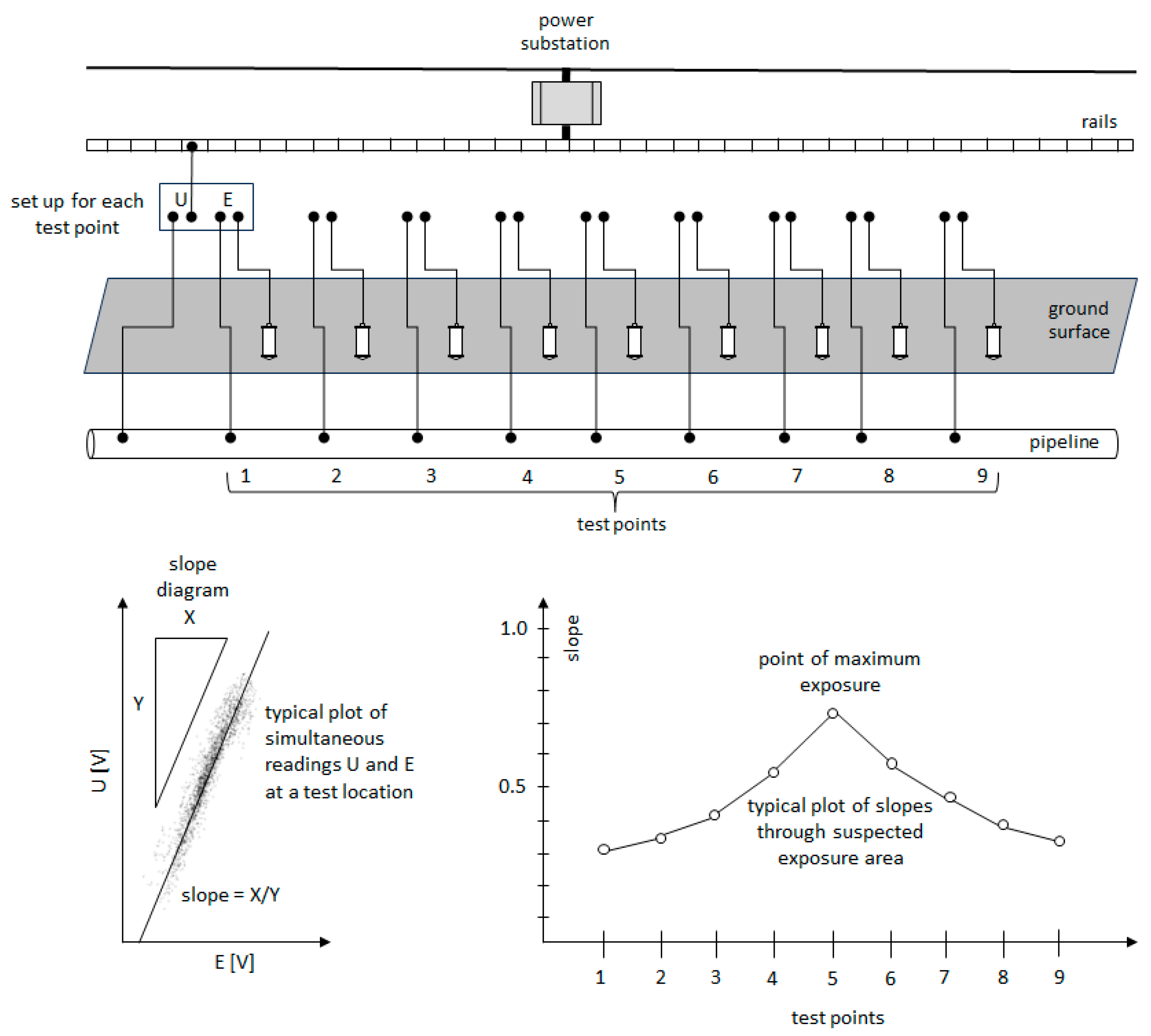 Determination of the point of maximum stray current exposure (prepared based on the original figure from Ref. []).