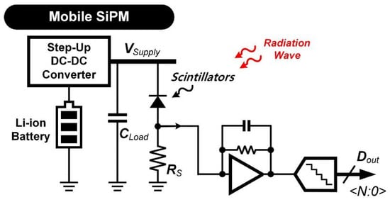 - Jeon, H.; Shin, S.-U. A Power/Hardware-Efficient SiPM Readout IC Embedded in a Boost Converter for Mobile Radiation Dosimeters. IEEE Trans. Power Electron. 2023, 38, 657–665. [Google Scholar] [CrossRef]