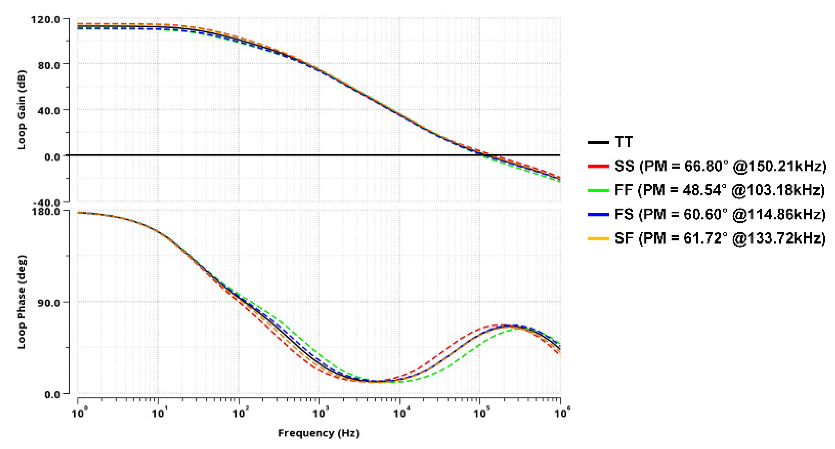Furthermore, to verify the robustness of the control loop against process variations, extensive corner simulations were conducted. As shown in