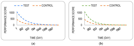where is the daily percentage improvement per scenario, is the daily performance score of the test system, and is the daily performance score of the control system.