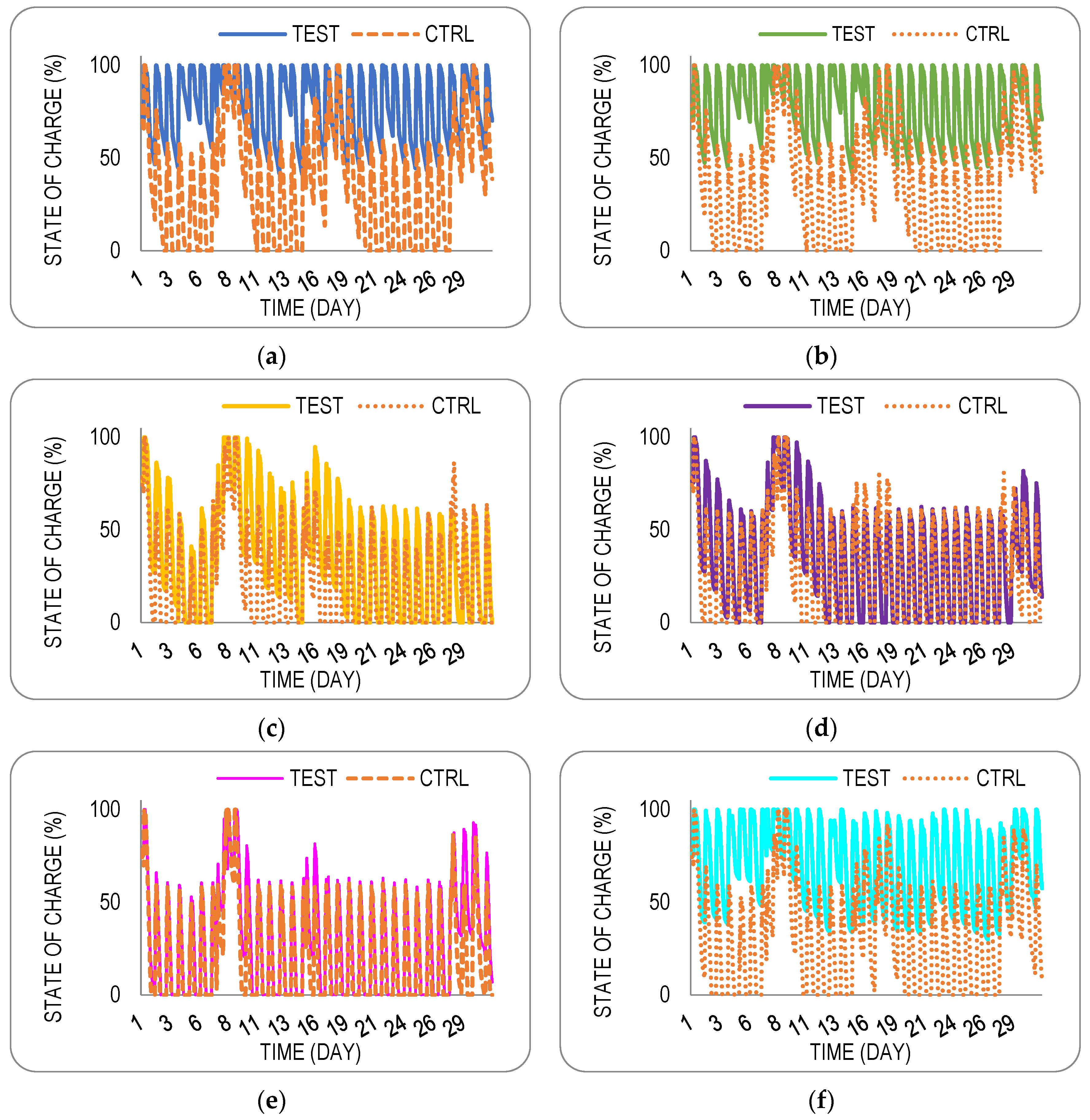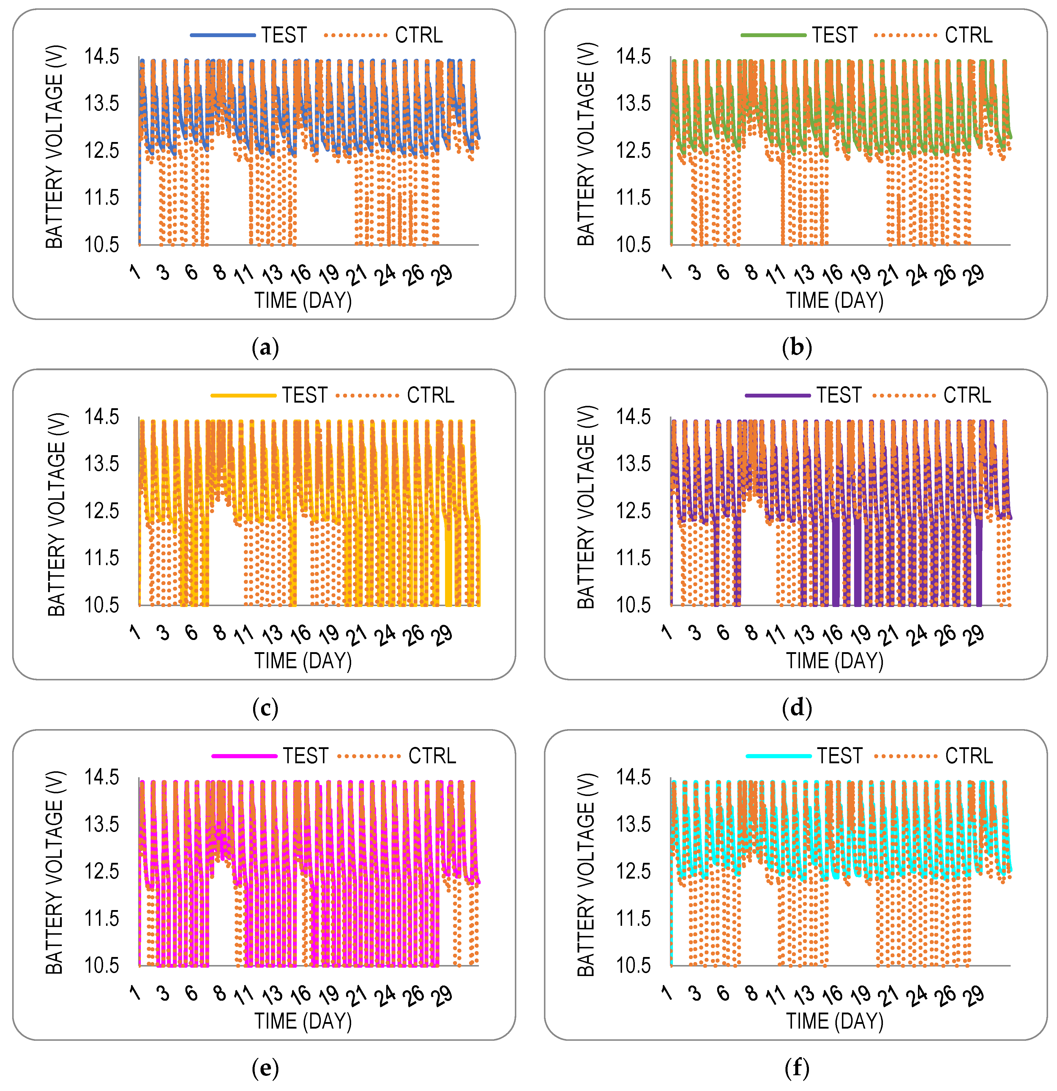- Delgado-Sanchez, J.-M.; Lillo-Bravo, I. Influence of degradation processes in lead–acid batteries on the technoeconomic analysis of photovoltaic systems. Energies 2020, 13, 4075. [Google Scholar] [CrossRef]