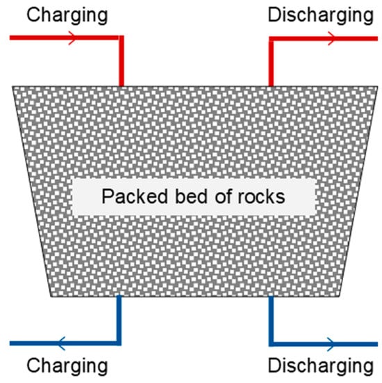 - Rabi’, A.M.; Radulovic, J.; Buick, J.M. Investigation of the Charging and Discharging Cycle of Packed-Bed Storage Tanks for Energy Storage Systems: A Numerical Study. Thermo 2025, 5, 24. [Google Scholar] [CrossRef]