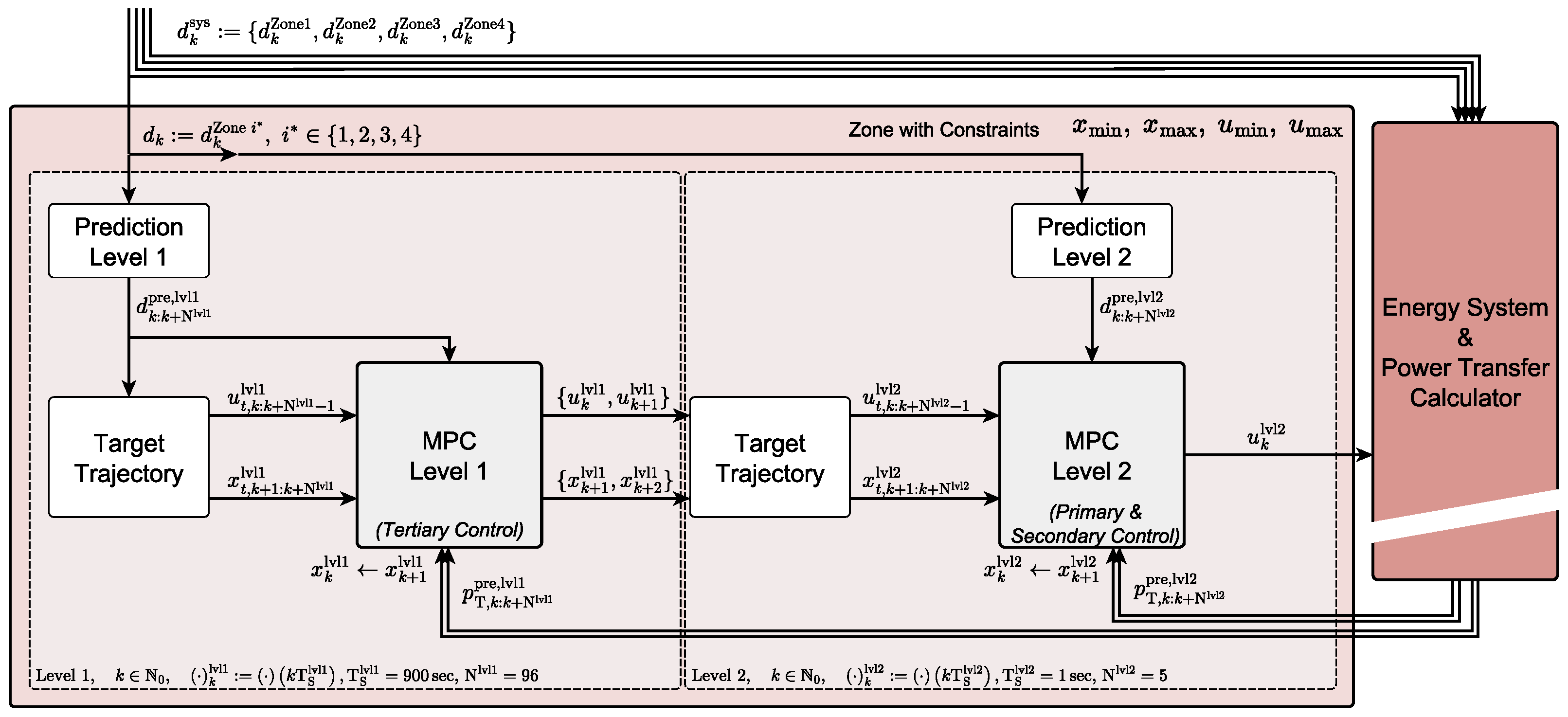 Figure 2, along with the state-space representations for both control layers, is used to evaluate zone behavior in isolation, assuming zero transfer powers.