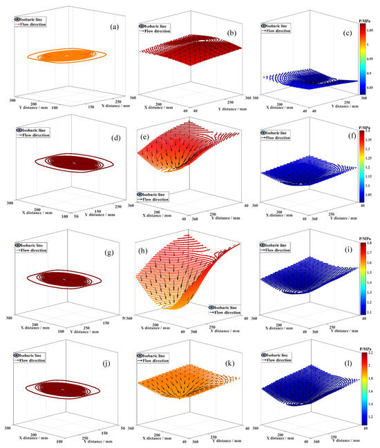 4.1. 3D Spatial Distribution of Fluid and Characteristic Parameter Response