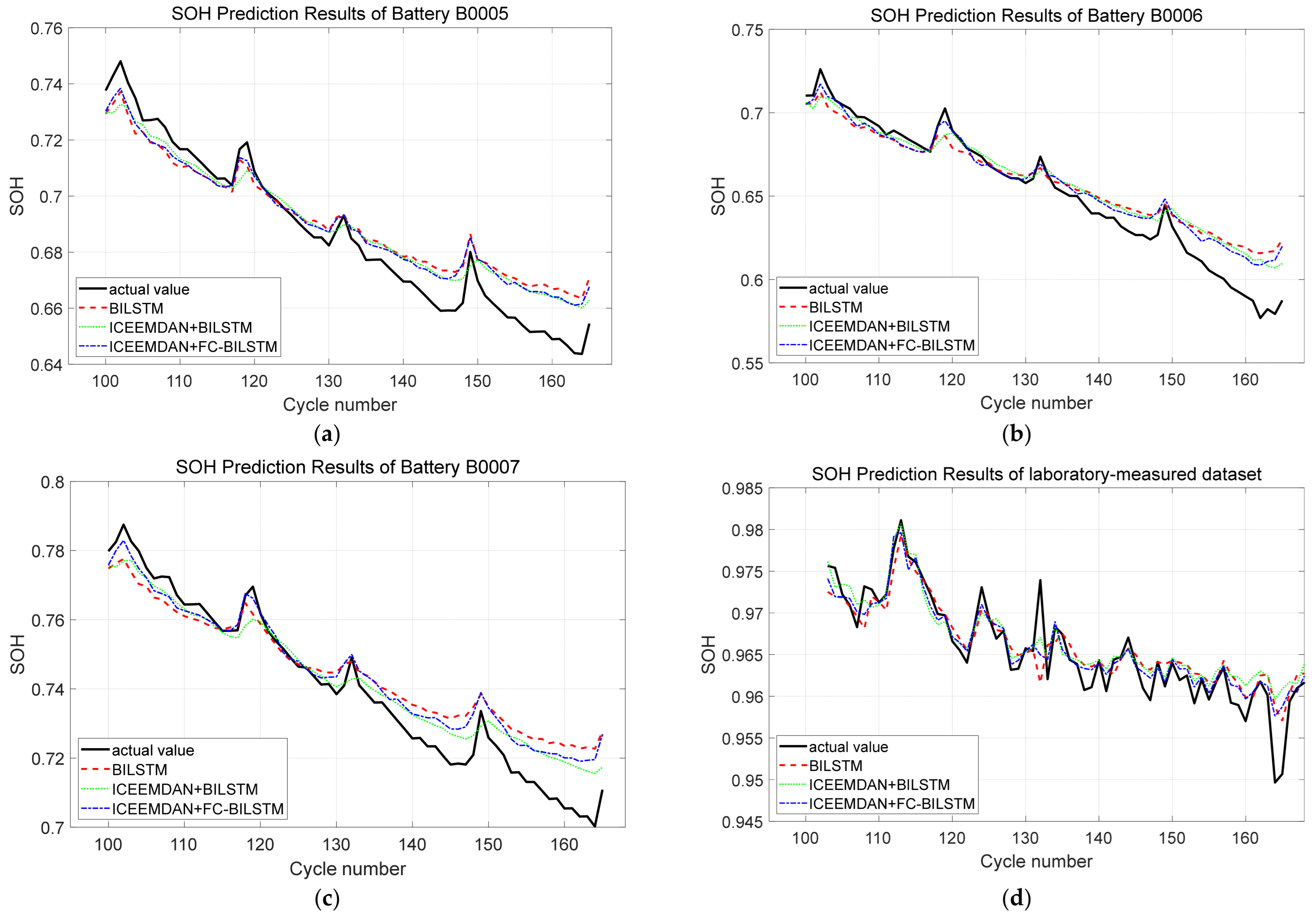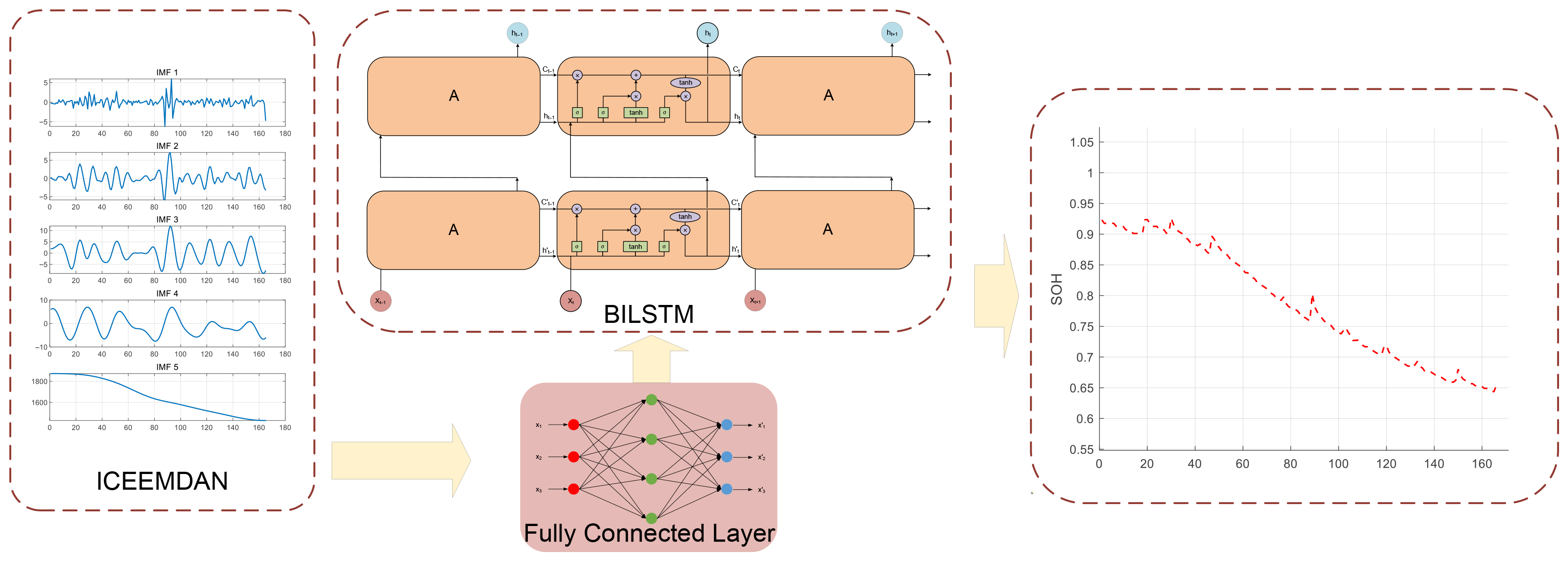 Meng, X.; Zhang, H.; Lan, H.; Cui, S.; Huang, Y.; Li, G.; Dong, Y.; Zhou, S. Lithium-Ion Battery SOH Prediction Method Based on ICEEMDAN+FC-BiLSTM. Energies 2025, 18, 5617. https://doi.org/10.3390/en18215617
