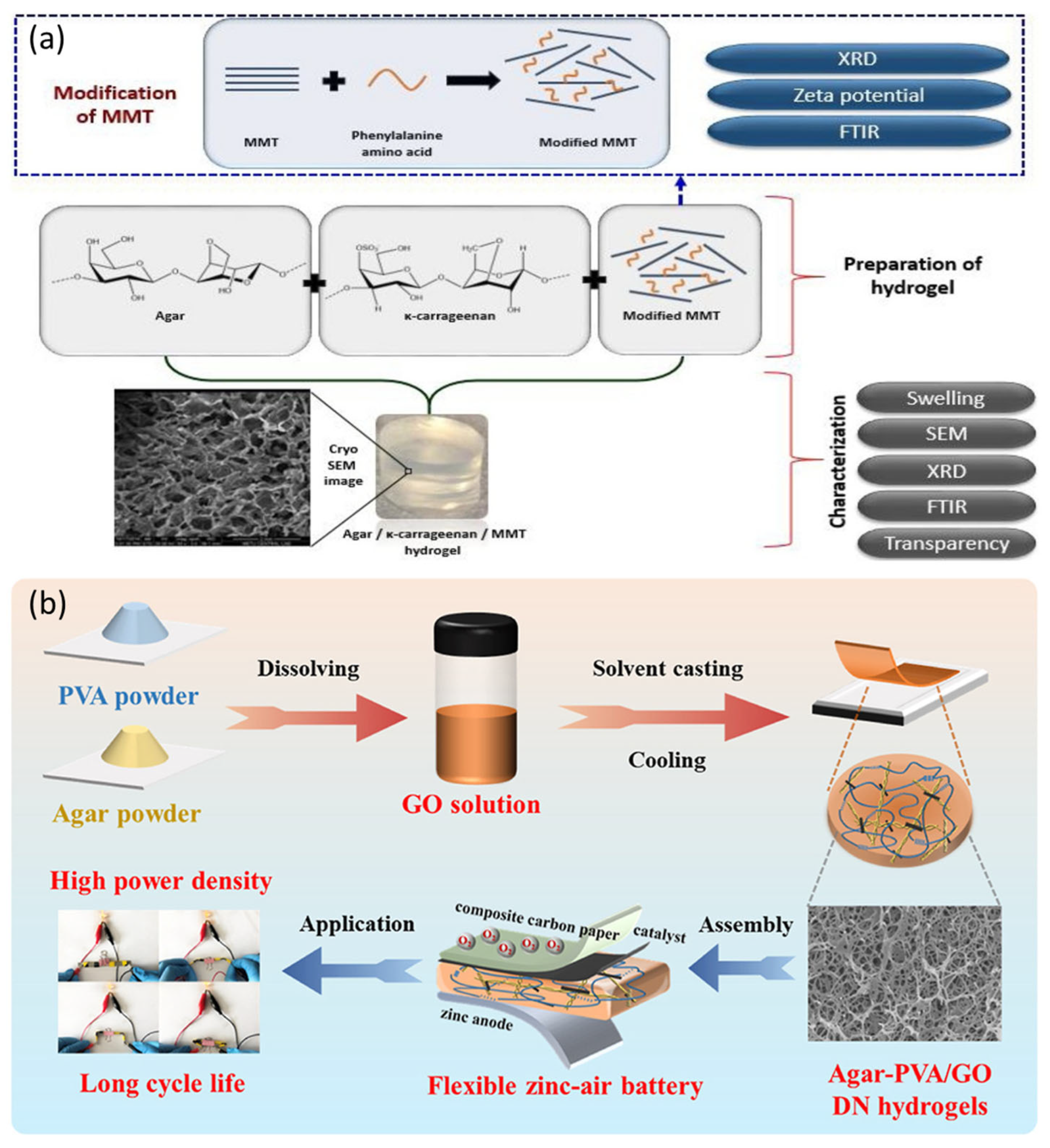 - Zheng, Z.; Liu, Y.; Li, Y.; Zhou, J.; Fu, G.; Yang, B.; Zhu, Y. Agar/polyacrylamide-based hydrogel polymer electrolyte for ultra-stable flexible aqueous lithium-zinc hybrid ion batteries. Appl. Mater. Today 2025, 42, 102585. [Google Scholar] [CrossRef]