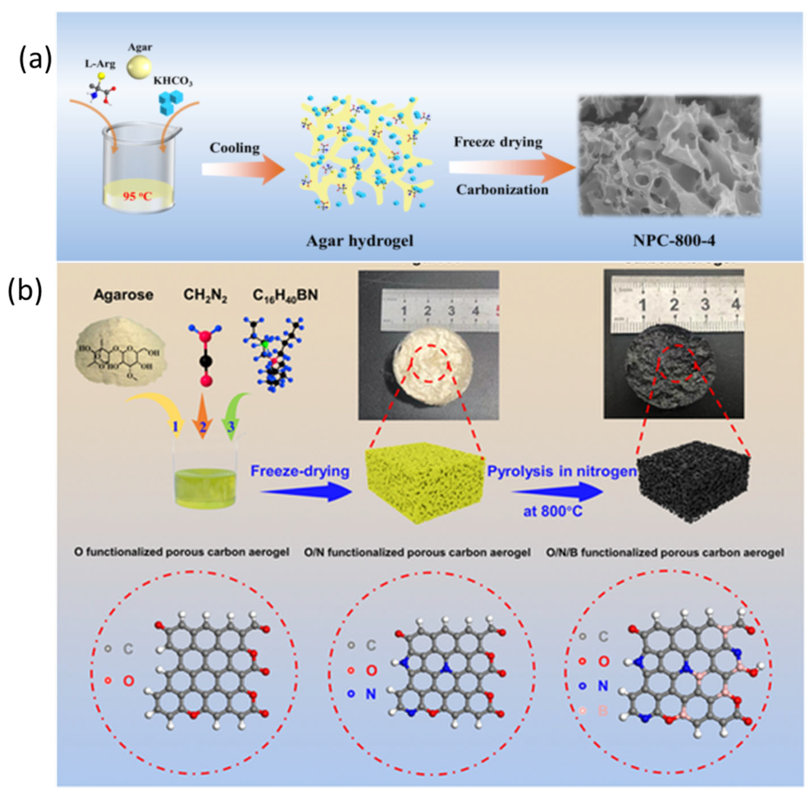 - Xie, K.; Xia, K.; Ding, X.; Fang, L.; Liu, X.; Zhang, X. Facile preparation of 3D porous agar-based heteroatom-doped carbon aerogels for high-energy density supercapacitors. RSC Adv. 2022, 12, 20975–20982. [Google Scholar] [CrossRef]