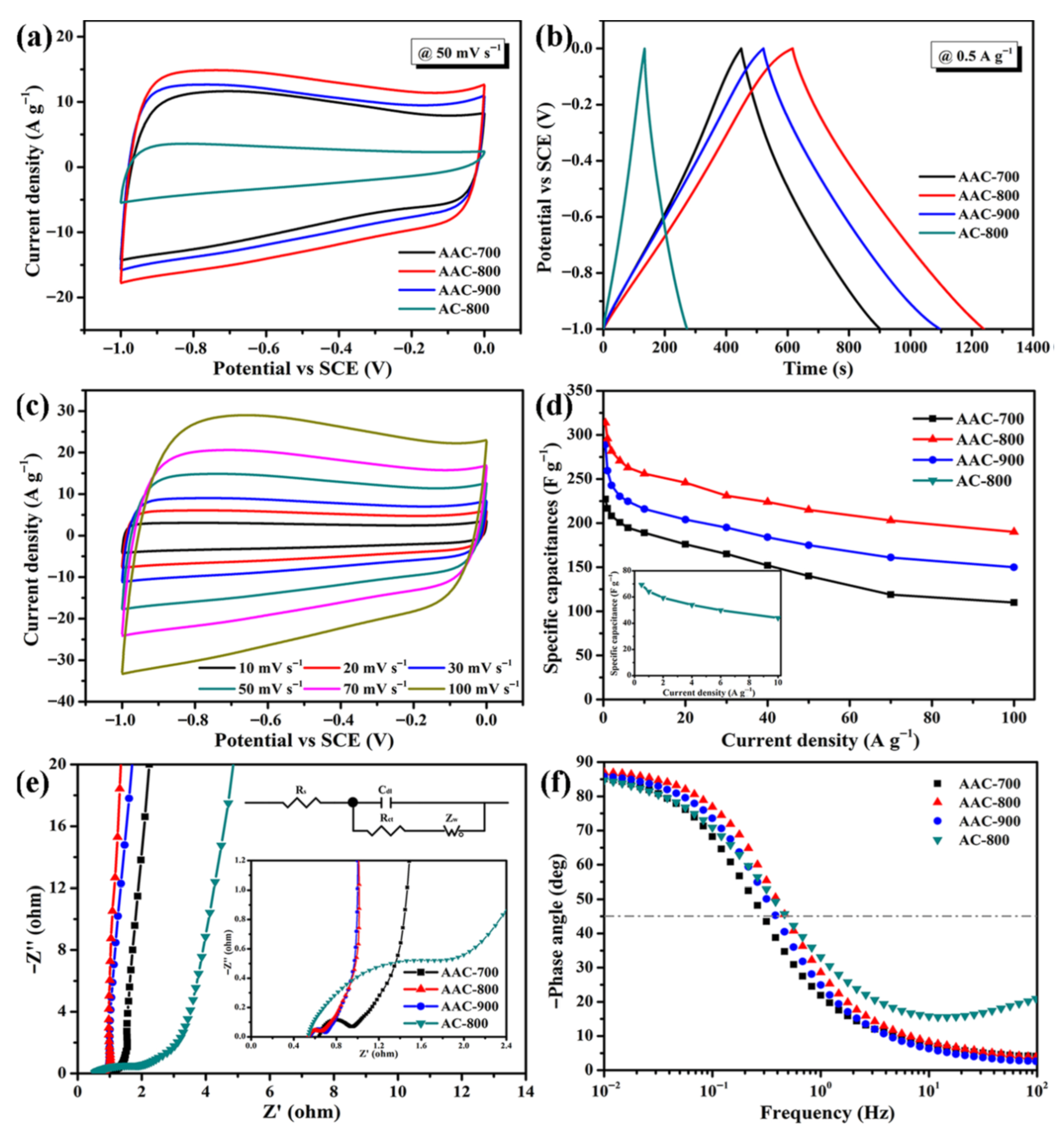 - Hu, X.; Zhuo, K.; Sun, D.; Du, Q.; Sun, L.; Chen, Y.; Bai, G.; Wang, J. Nitrogen-doped agar-derived porous carbon with long cycle life for high-performance ionic liquid-based supercapacitors. Diam. Relat. Mater. 2023, 139, 110332. [Google Scholar] [CrossRef]