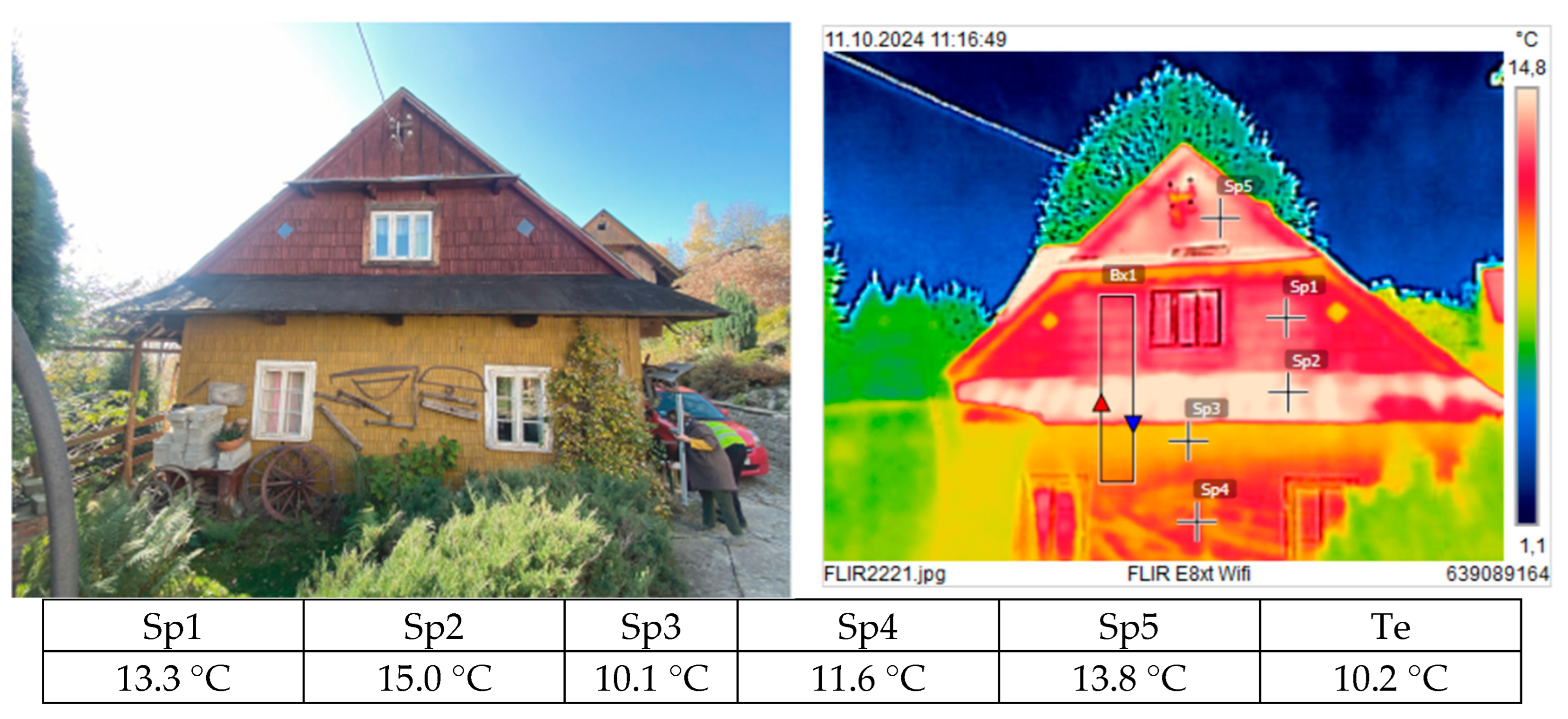 - Although unconventional construction solutions represent an important element of regional cultural heritage, they may have an adverse impact on the building’s thermal performance (e.g., in the Silesian Beskids, the “cold end” exhibited a temperature up to 6 °C lower than the remainder of the external envelope) and thus require particular attention from designers.