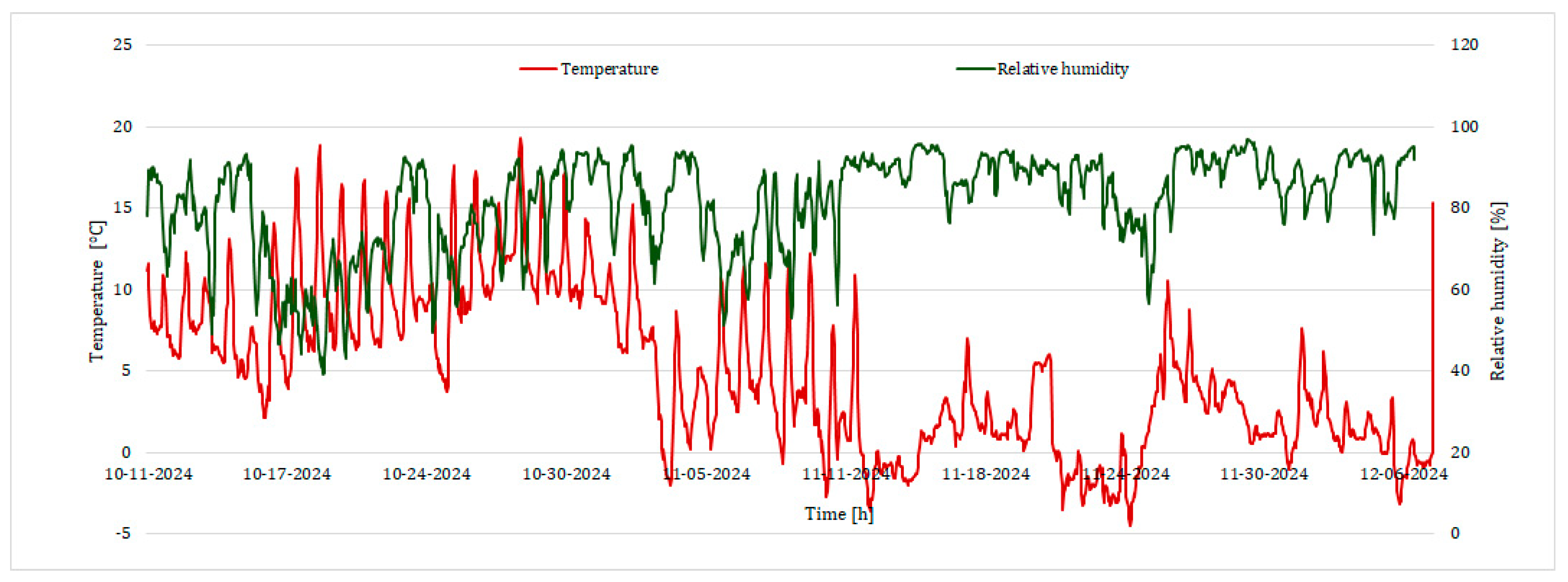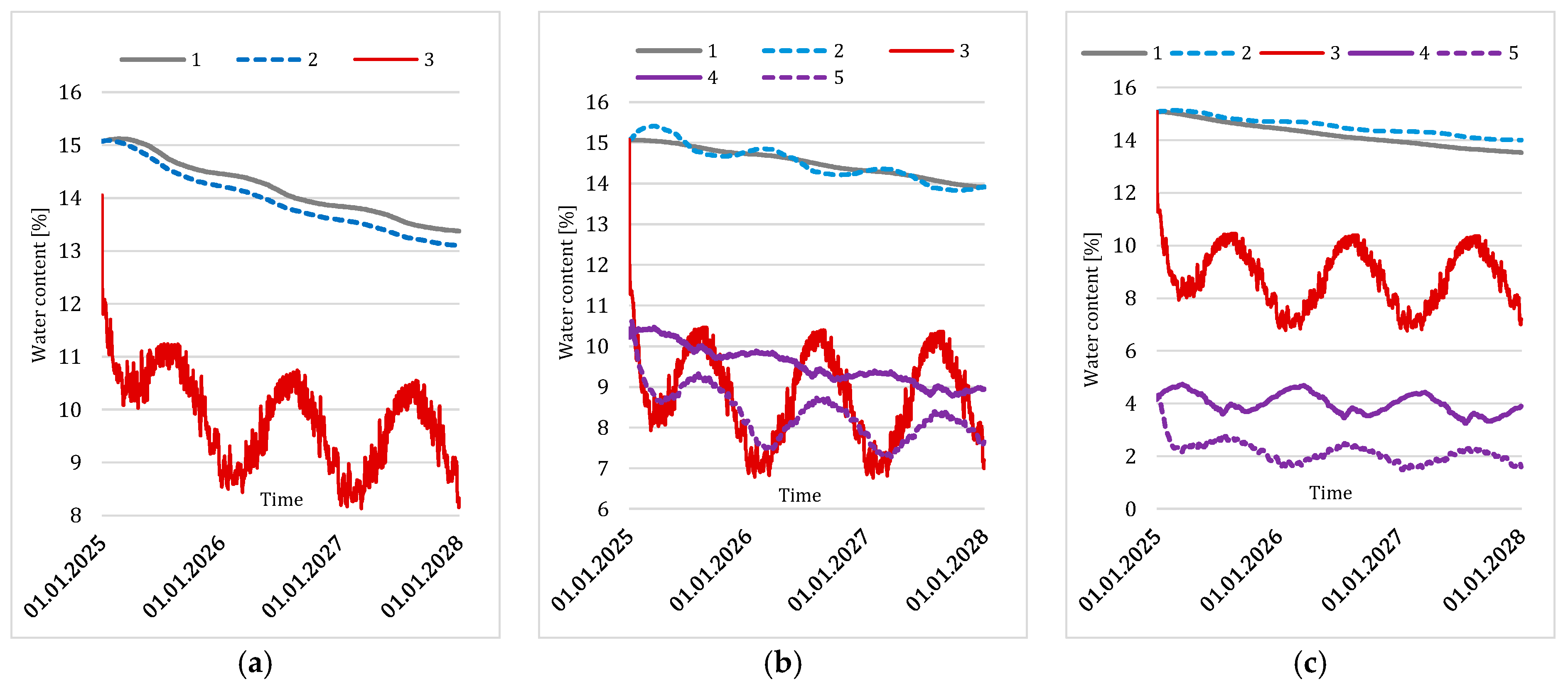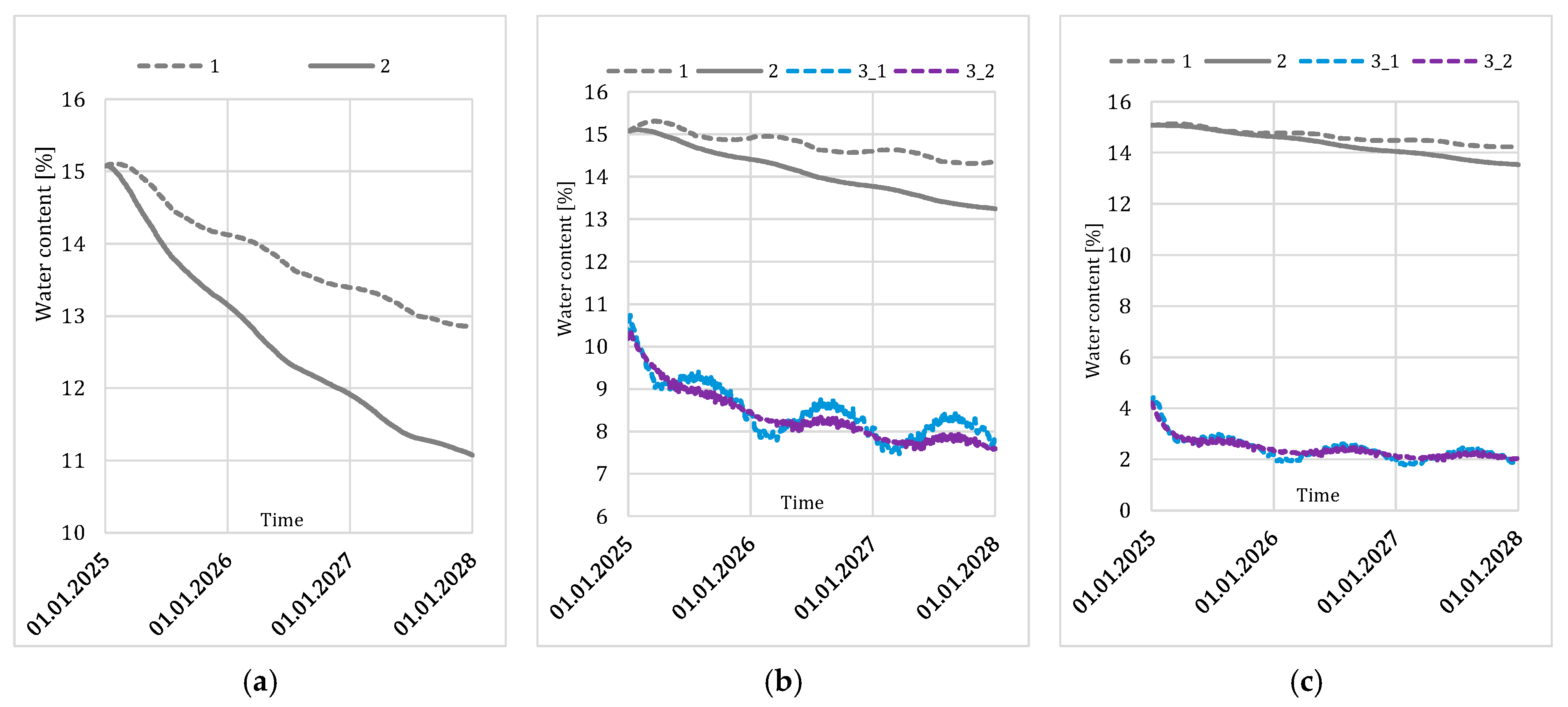 - As the initial condition for all simulations, the exterior climate of 1 January 2025, 0:00 was used; all simulations were performed for a period of 3 years from the starting date, i.e., until 1 January 2028, 0:00.